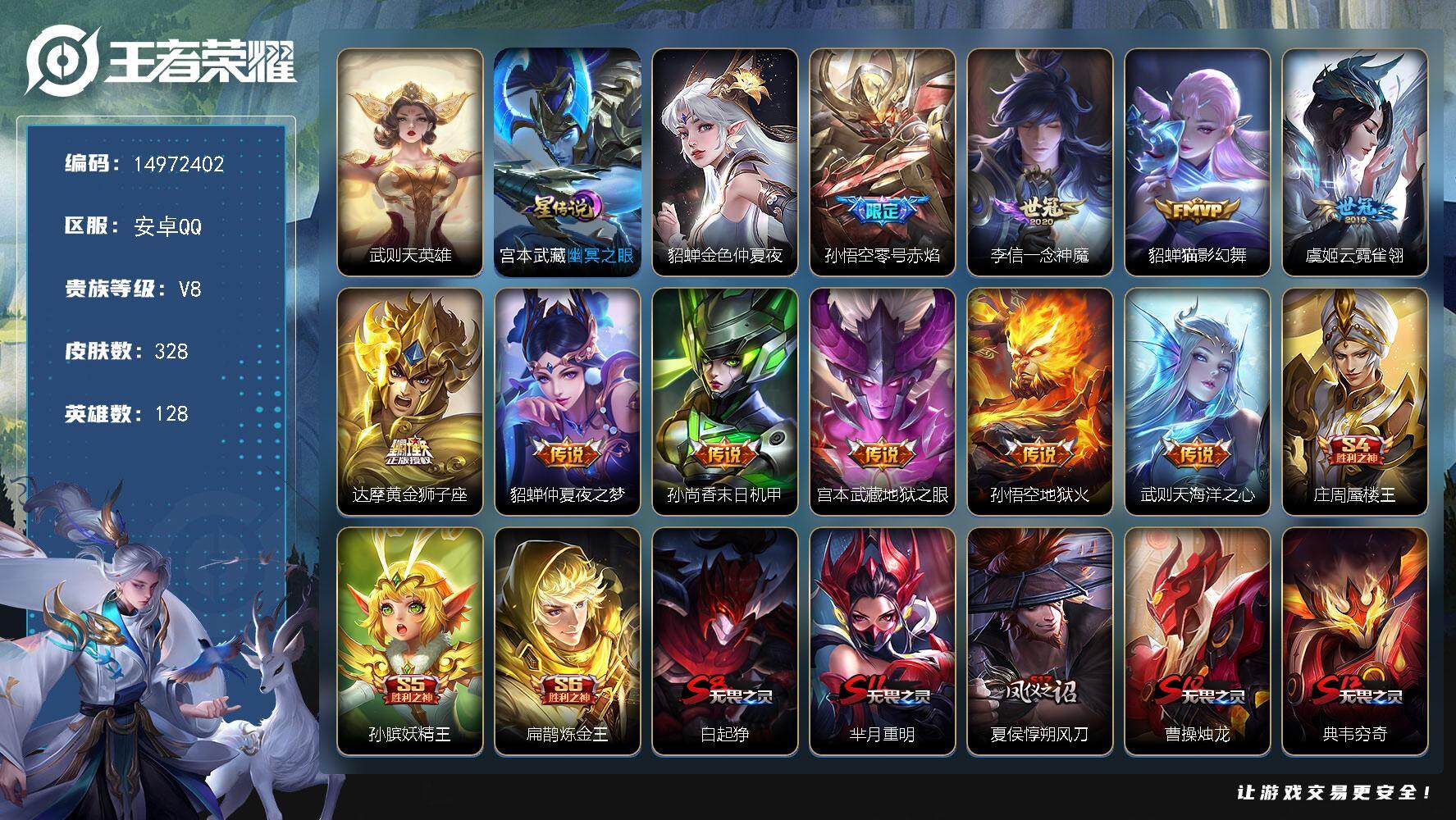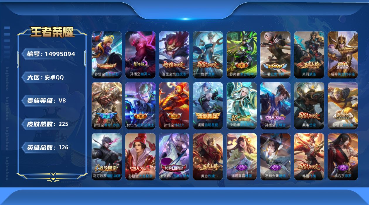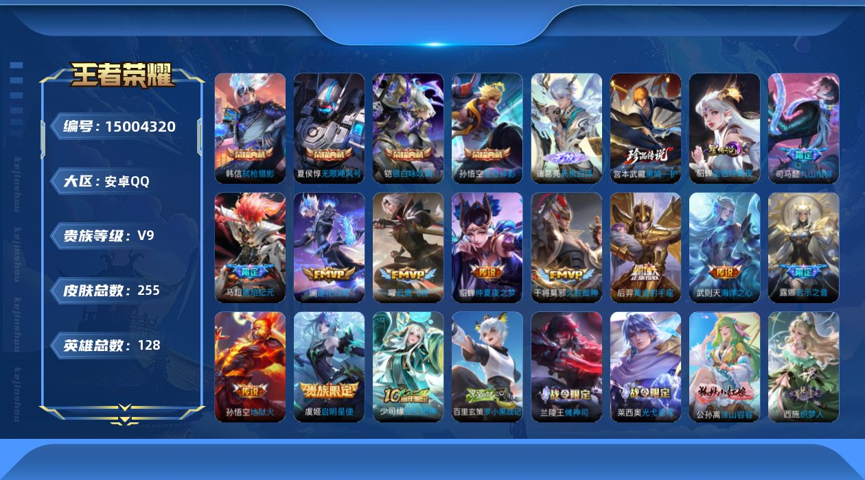 皮肤403 英雄128 荣耀王者 荣耀典藏6 传说29 其他皮肤176-061-【400皮肤6水晶4星元29传说】安卓QQ-123