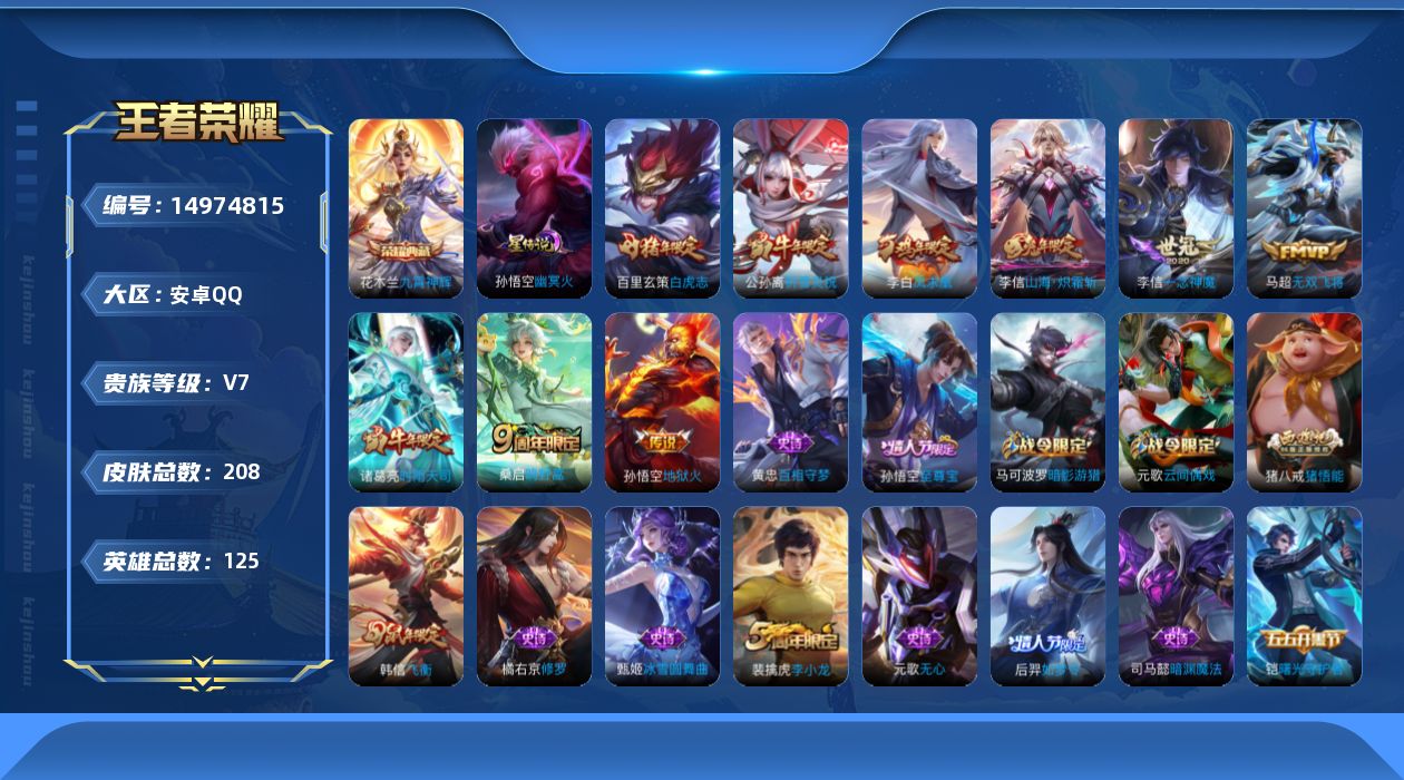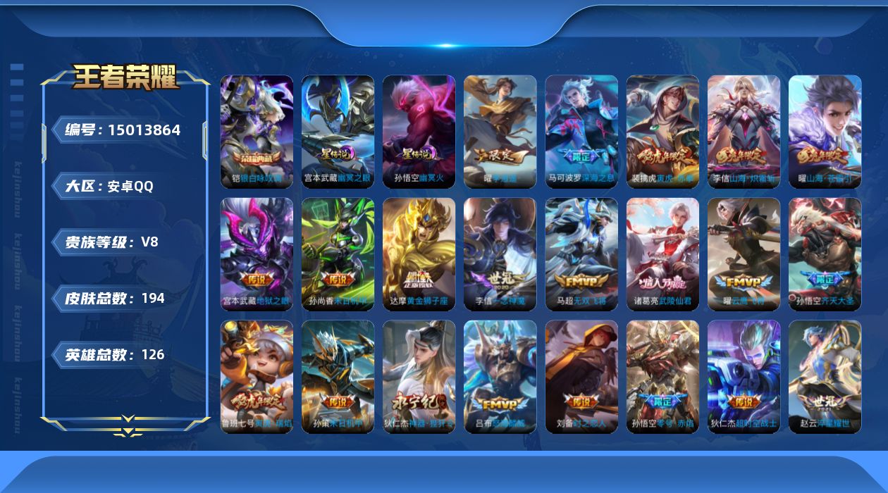 皮肤118 英雄125 非凡王者 传说2 其他皮肤35-急着过年。卖掉账号,给小孩发红包