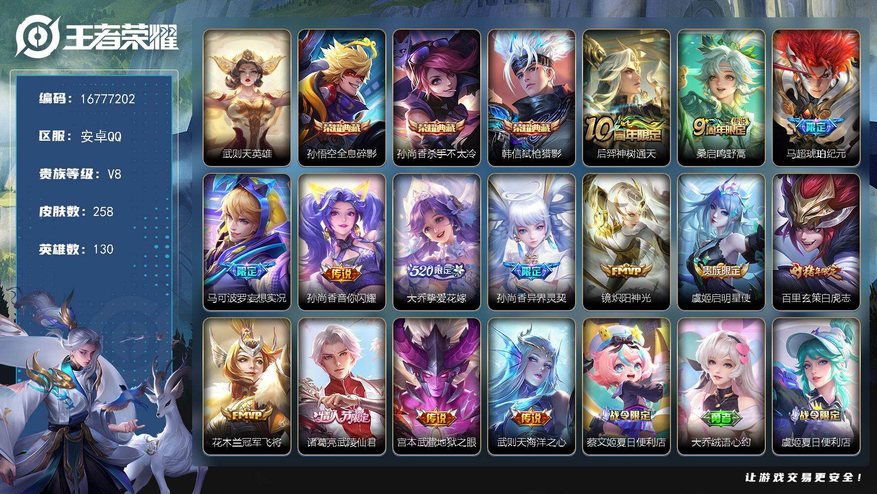 安卓Q-V0-荣耀黄金II段位-130英雄-258皮肤-3典