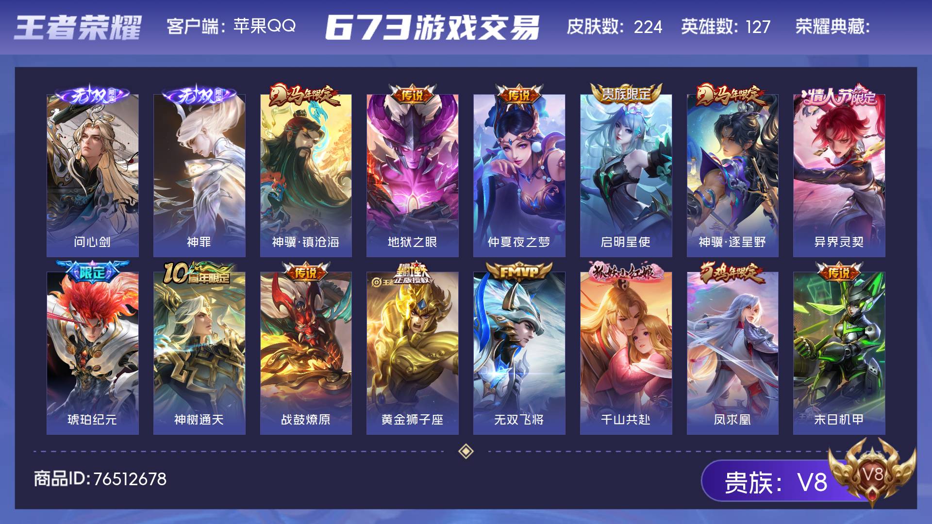 苹果Q-V11-至尊星耀I段位-129英雄-643皮肤-6典藏皮肤-4无双-8