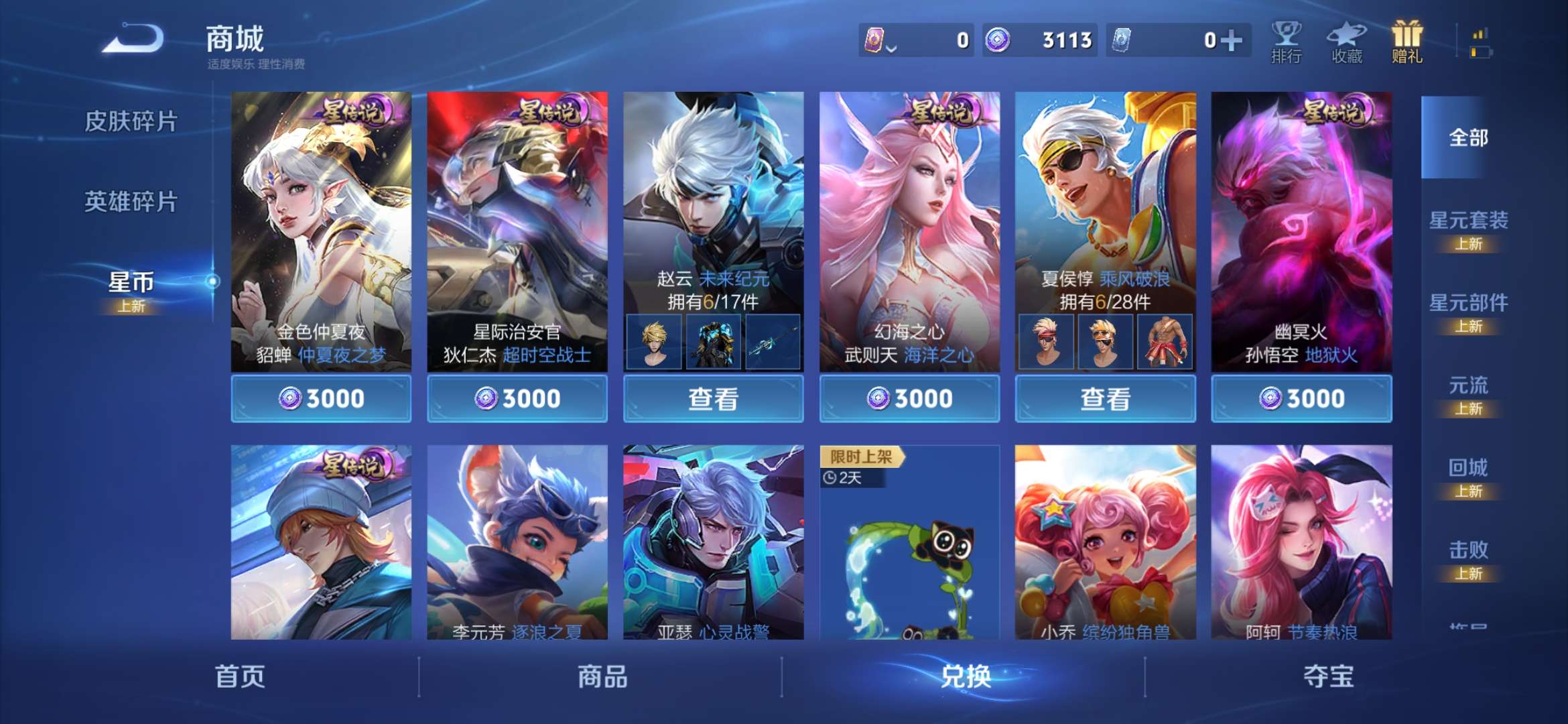 皮肤218 英雄127 荣耀王者 传说32 其他皮肤63-x88,1珍品传说时之奇旅33传说1星传说至尊宝允诺千山炫雷天君琥珀纪元仲夏夜