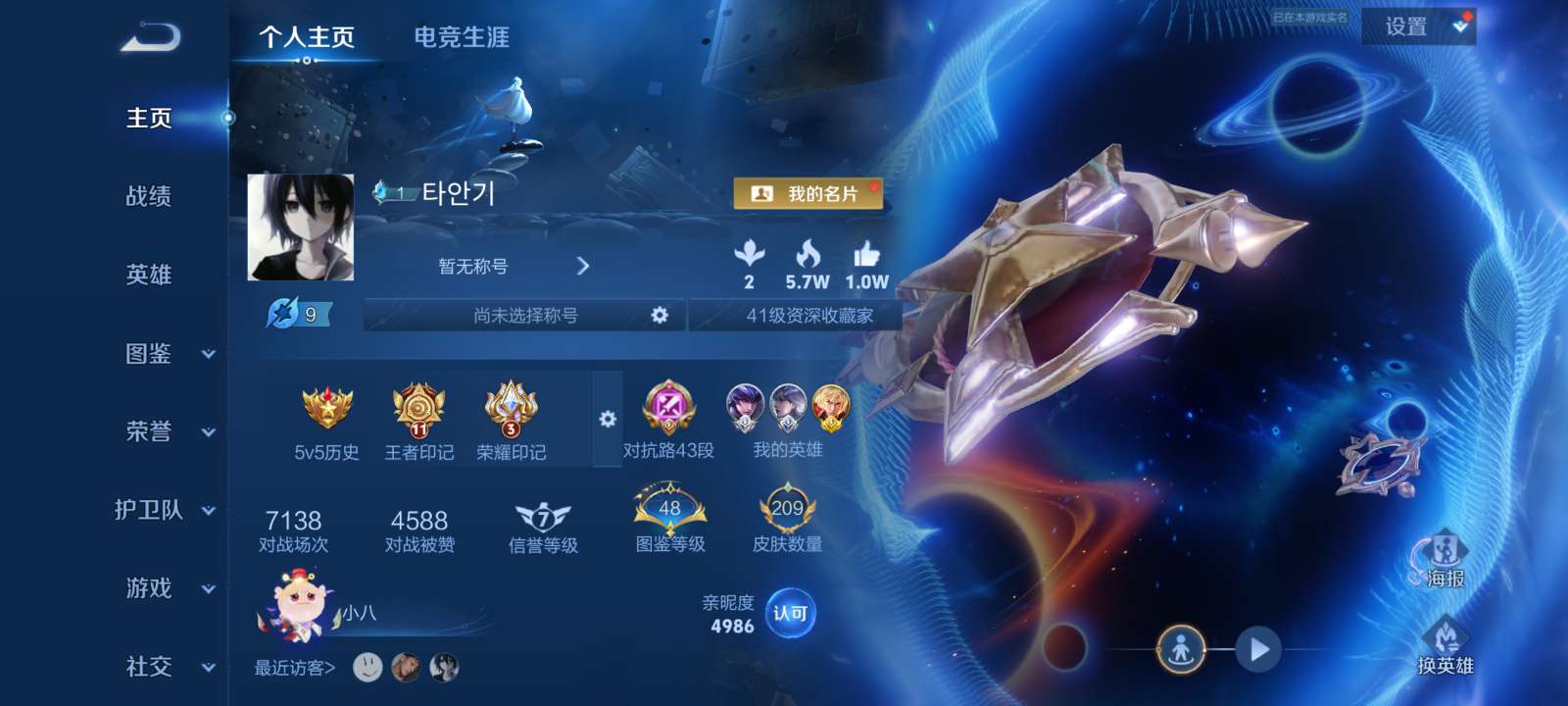 主页有永久的巅峰千强对抗路和万强打野57把百胜105评