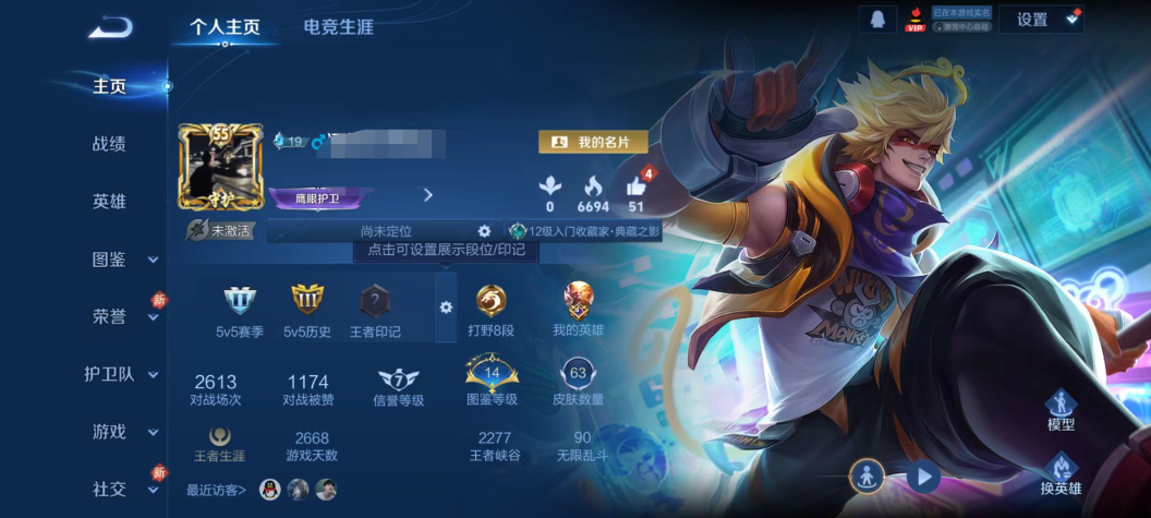 全国前10%巅峰发育路,皮肤数191无双皮肤数1传说皮肤数5