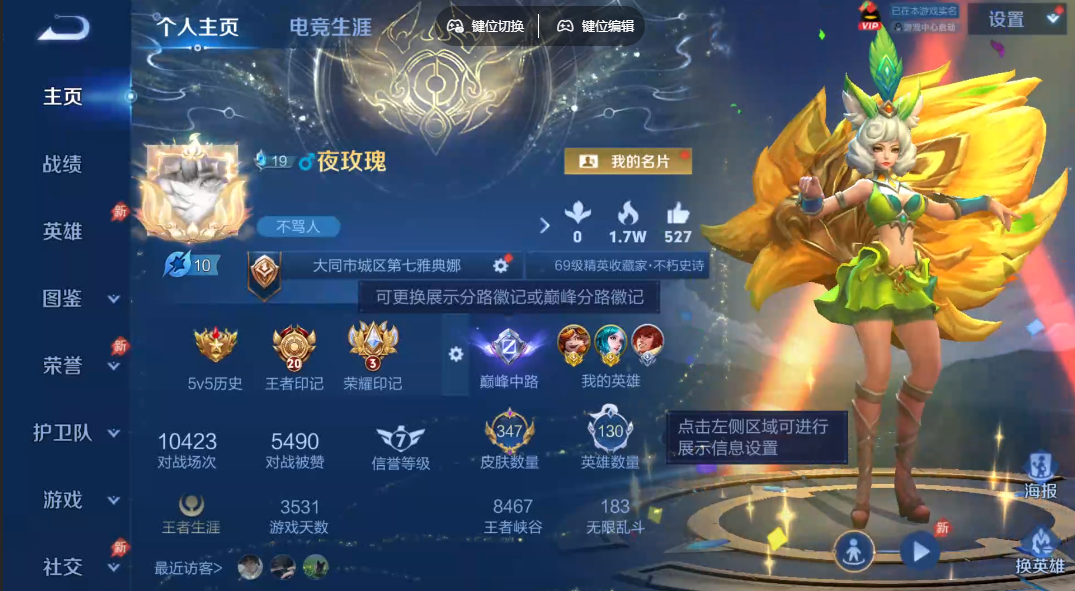 V10 皮肤521 英雄130 永恒钻石 荣耀典藏4 珍品无双1 无双皮肤9 珍品传说5 星传说6 传说59