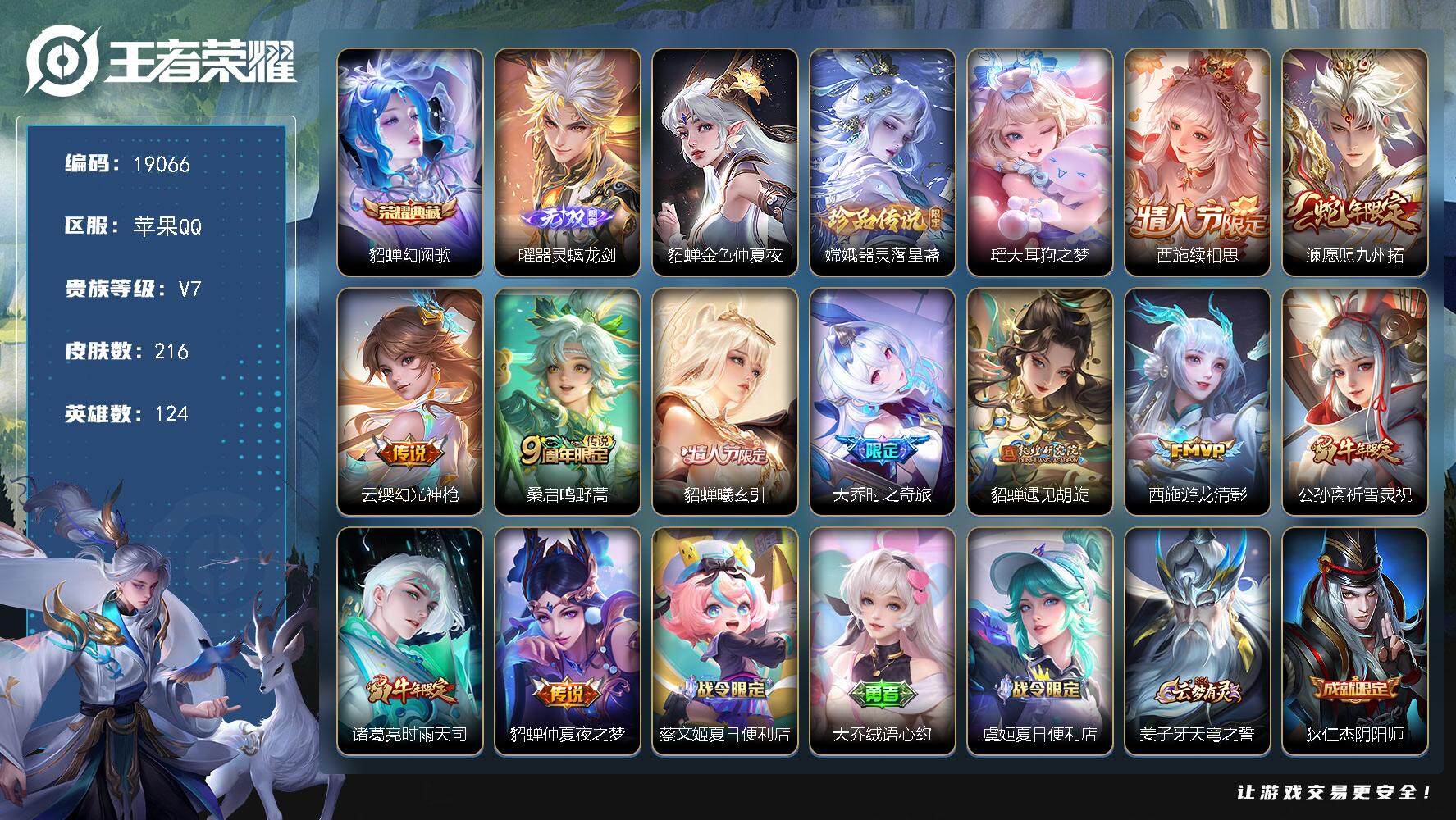 可换绑【精品女号 西施全皮 貂蝉典藏 曜无双 瑶嫦娥珍品 情人节貂蝉 祈雪灵祝