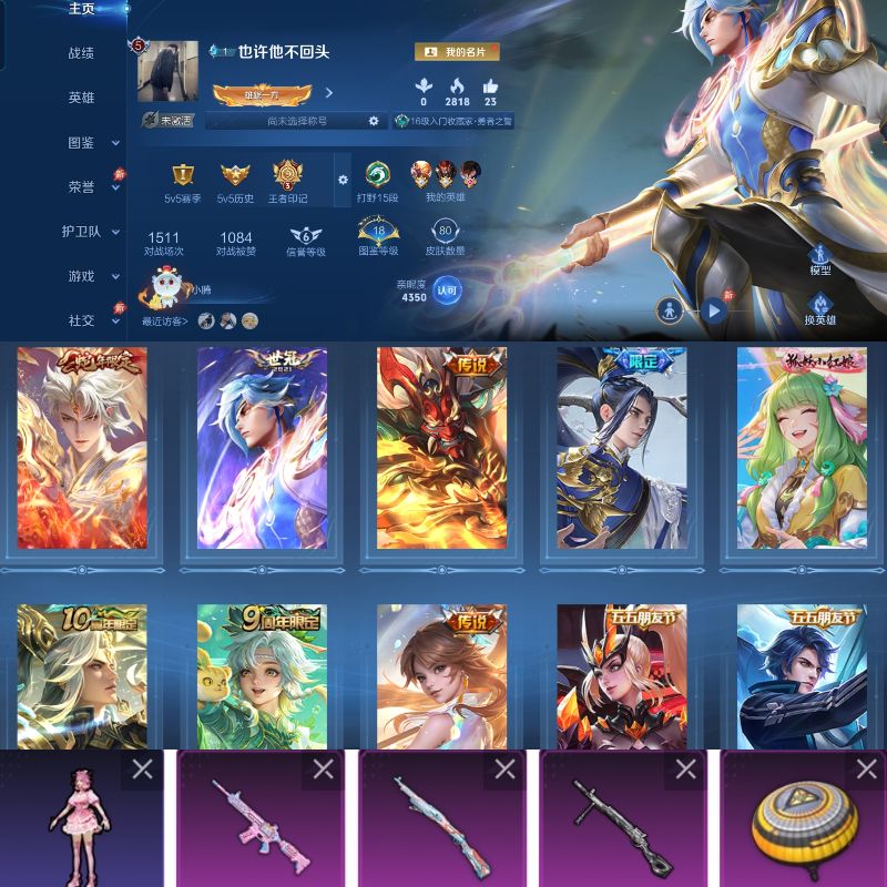 妹妹号!瑶全皮!4无双!瑶典藏!皮肤数量294印记总数8V9
