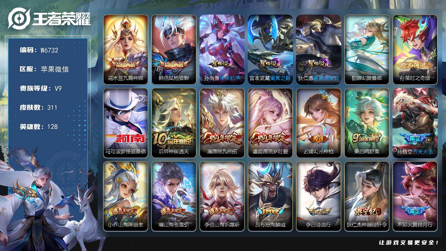万战金标韩信!雪境甄姬3无双!小乔3典藏!基德4珍品!皮肤数