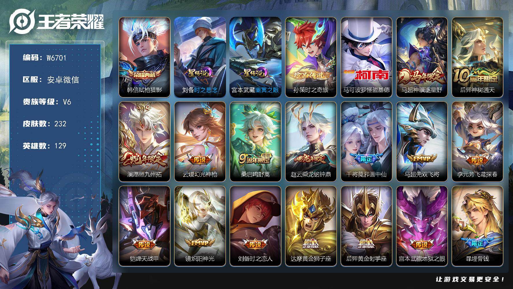 【W6701】【亮点:6K场次打野号-打野34段】安卓微信-不可二次-贵7-1