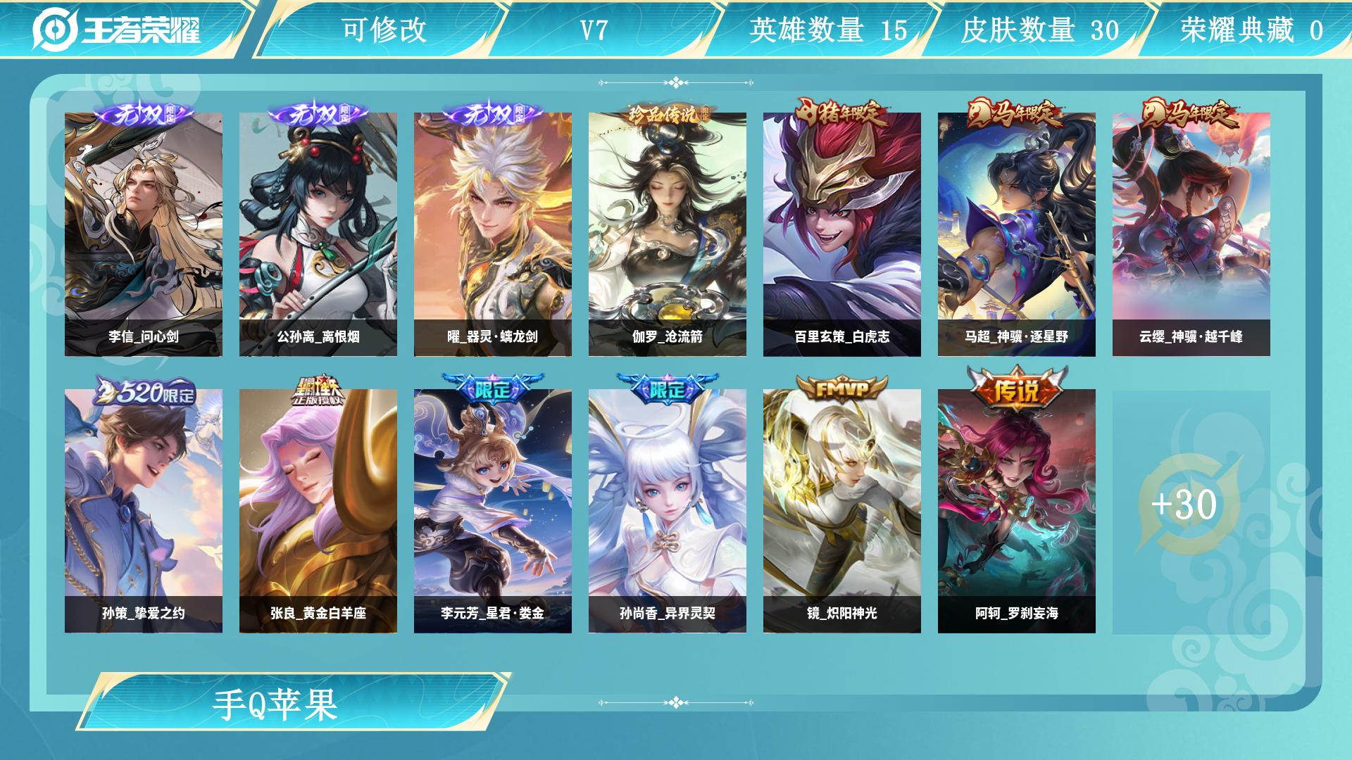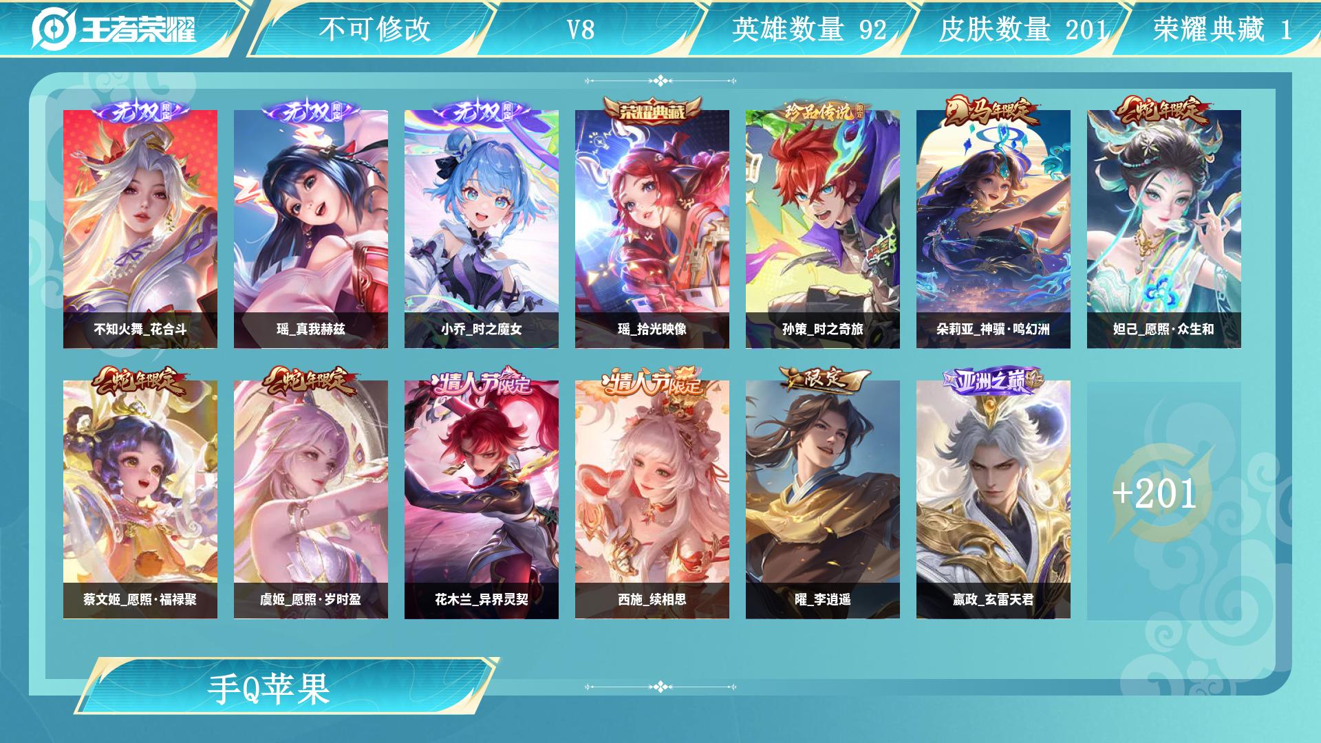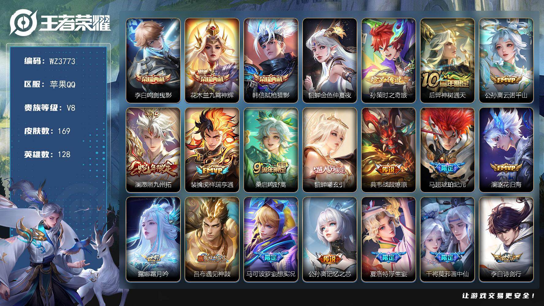 【秒换绑】苹果Q-V8-永恒钻石I段位-128英雄-169皮肤-3典藏皮肤-1
