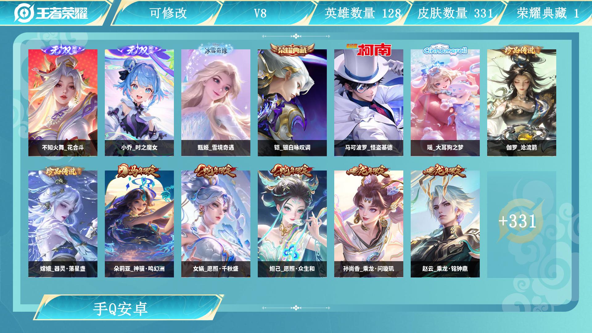 【秒换绑】安卓Q-V9-最强王者段位-128英雄-433皮肤-1典藏皮肤-1无