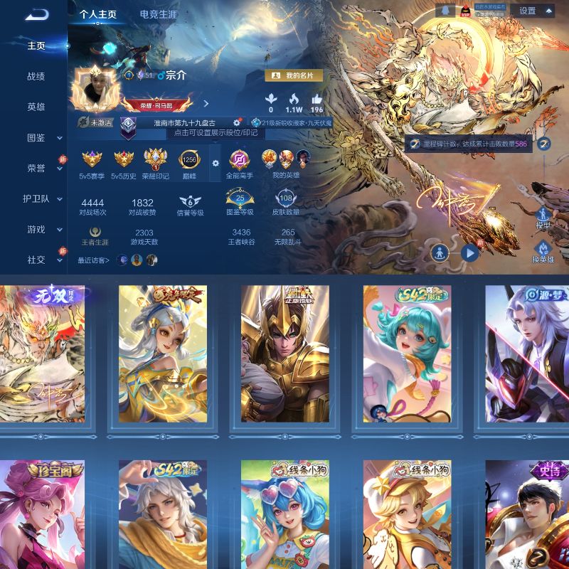 二五四七六零七_[王者荣耀]V63传说38史诗145皮肤最强王者