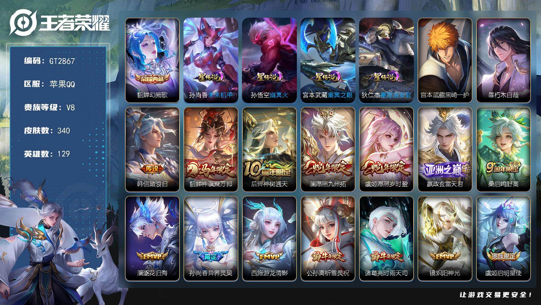 可换绑【精品带标小号·铠小乔典藏·涂山容容·谪仙醉月·东方月初·埋骨钱·孙行者