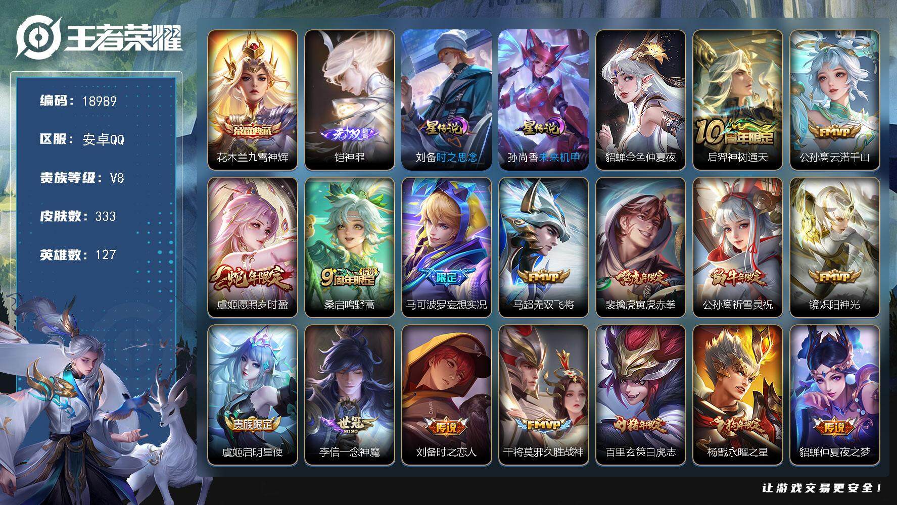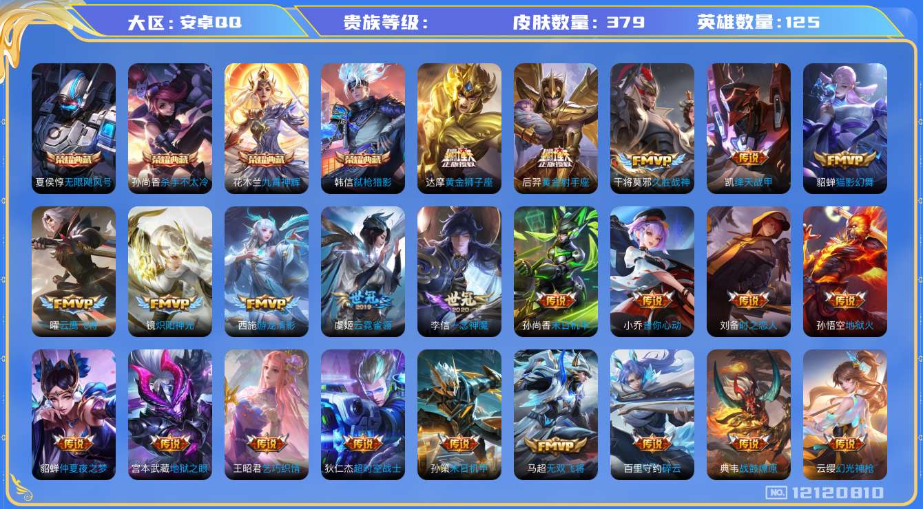 【W4474】安卓QQ-有二次-贵5-125英雄-184皮肤-4传说-53限定