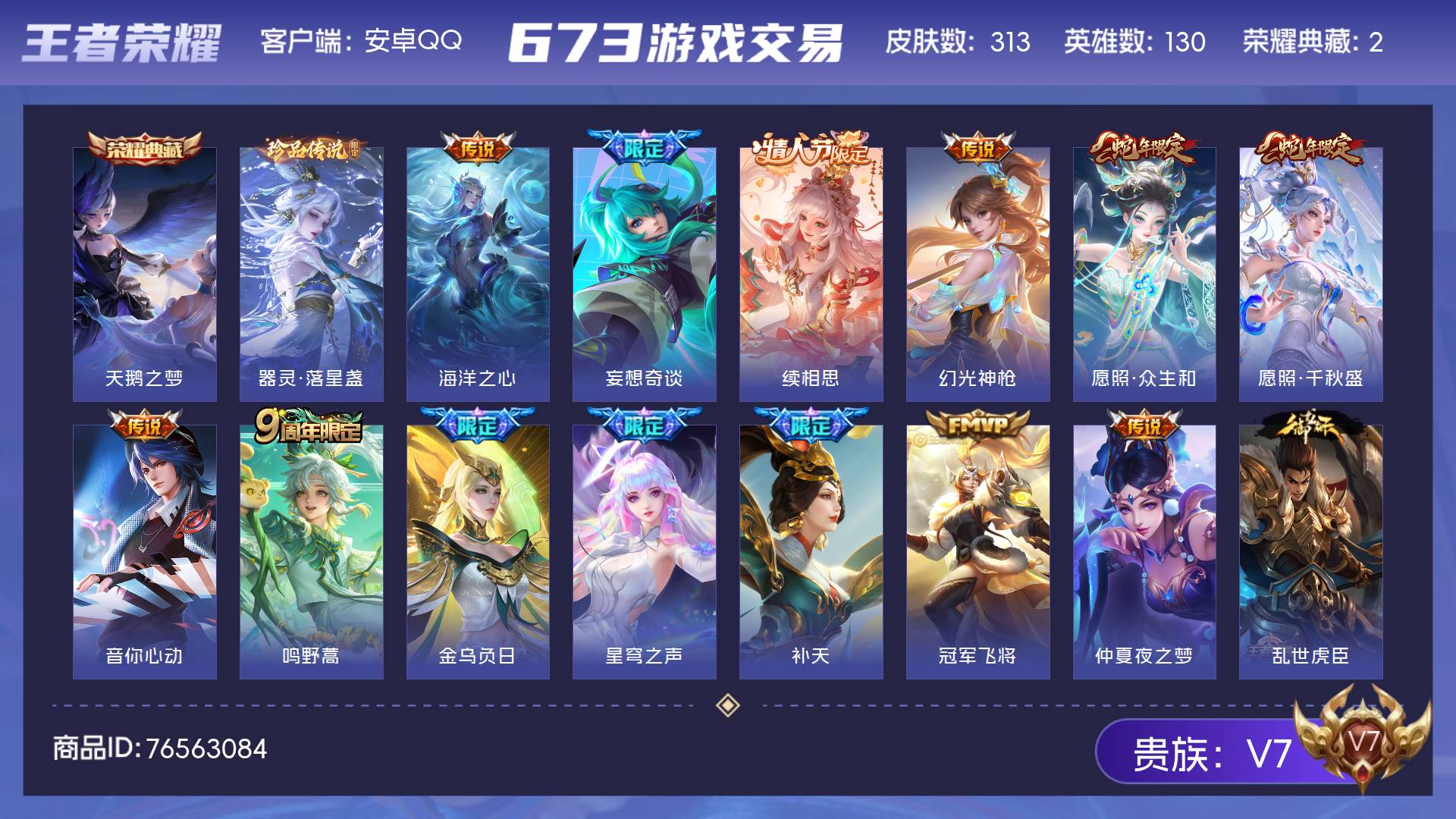 V7 皮肤313 英雄130 至尊星耀 荣耀典藏2 珍品传说1 星传说2 传说13