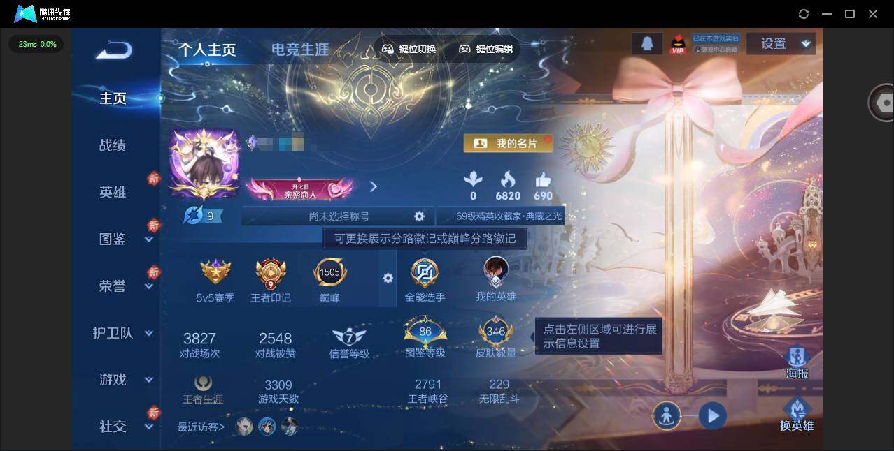 贵族等级6/荣耀典藏数量1/传说皮肤数量9/史诗皮肤数量52