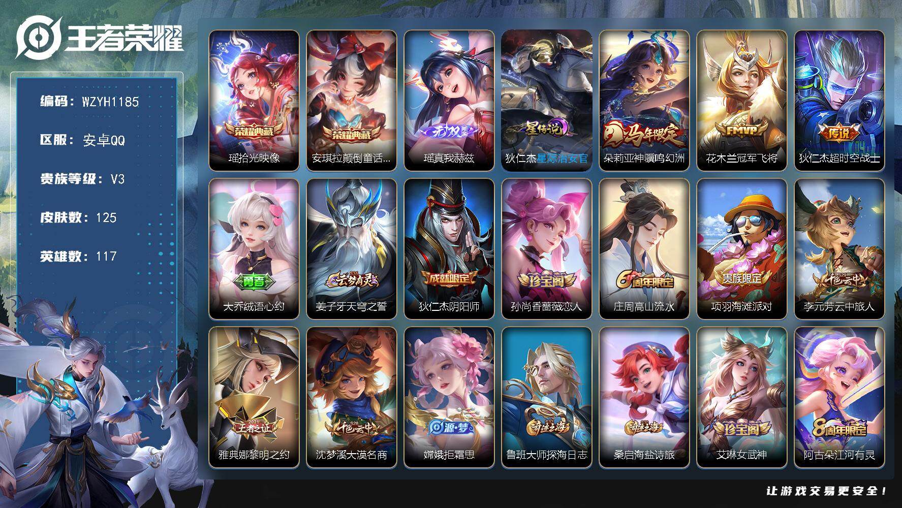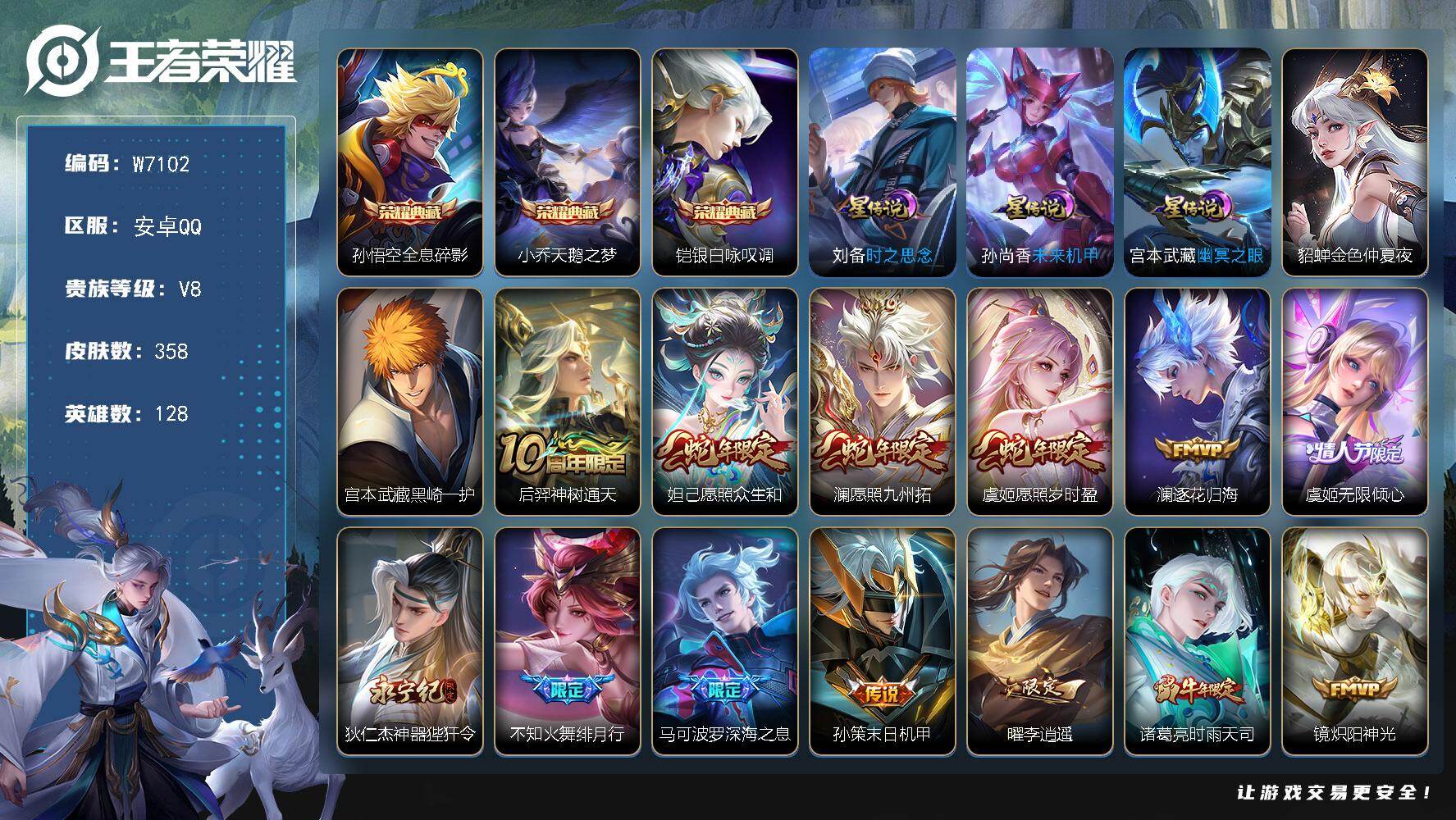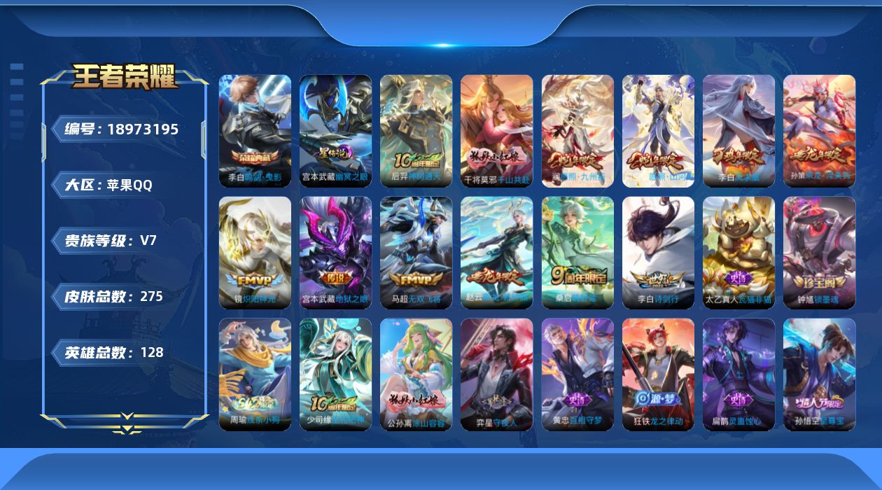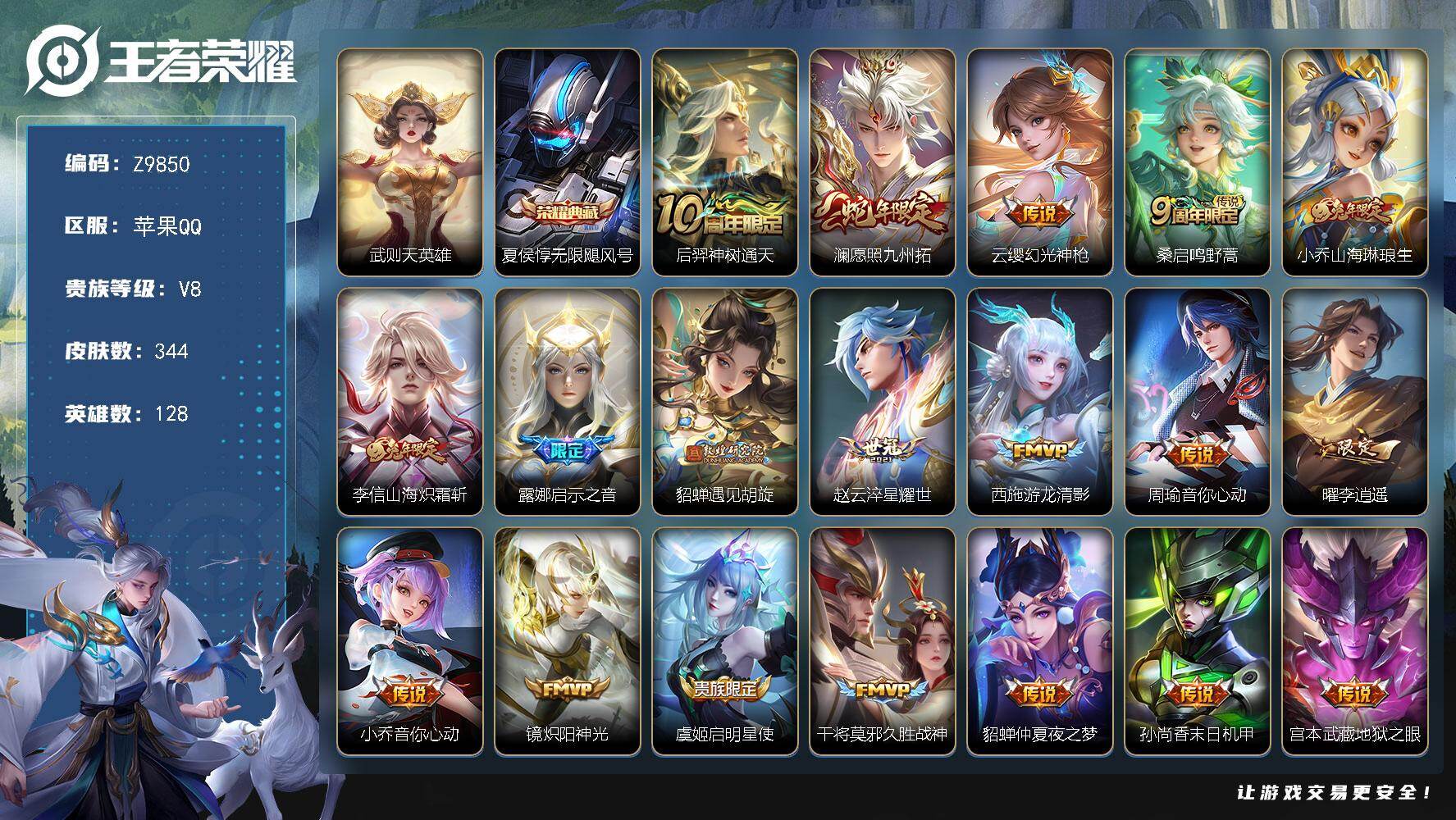 苹果Q-V8-至尊星耀III段位-128英雄-344皮肤-1典藏皮肤-1典藏英雄