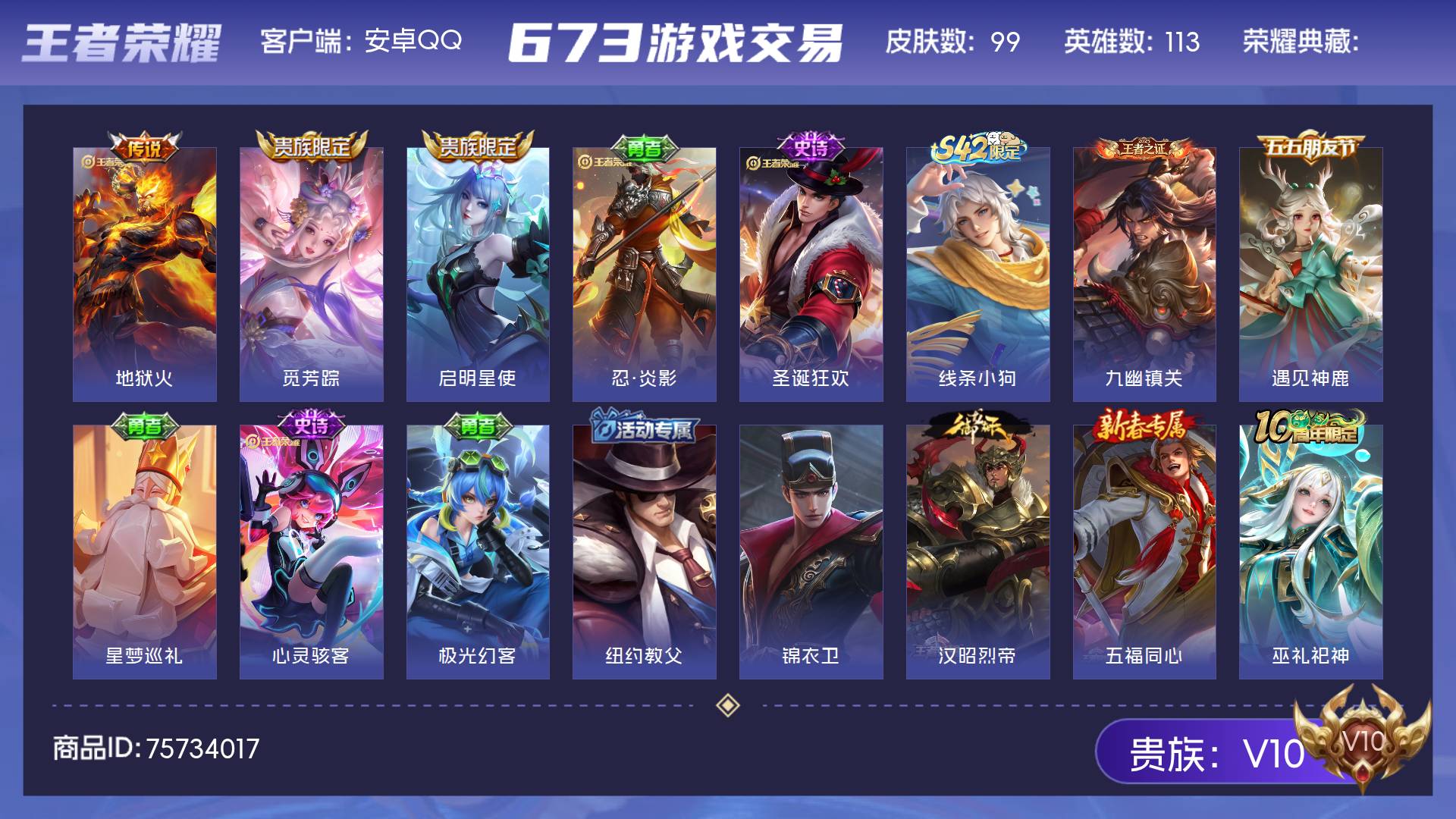 V10 皮肤99 英雄113 至尊星耀 传说3 其他皮肤102