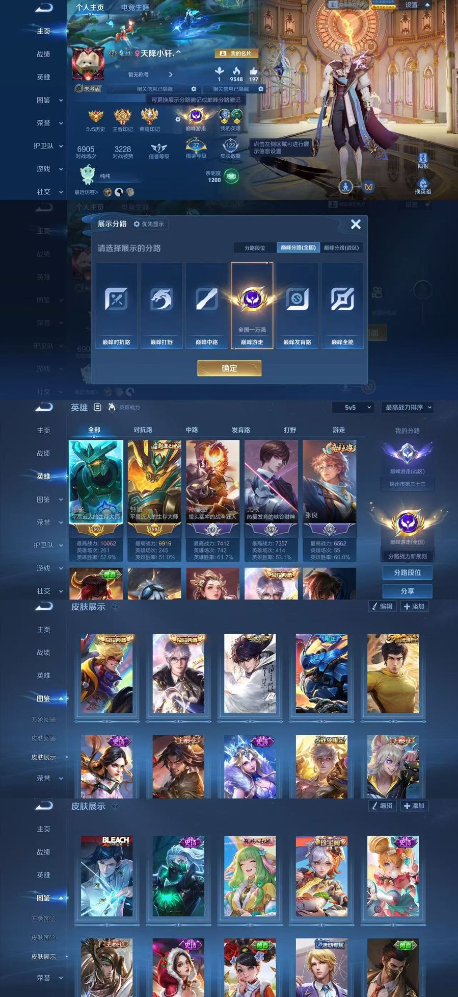 (氪金皮肤数据号)(巅峰游走全国一万强)主页好看历史段位高1