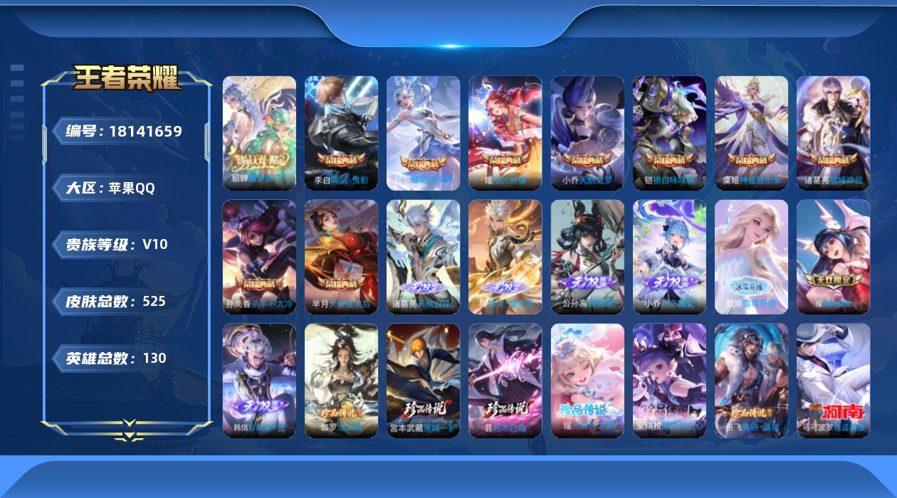 安卓Q-V6-最强王者段位-129英雄-375皮肤-1典藏皮肤-1无双-1珍品传