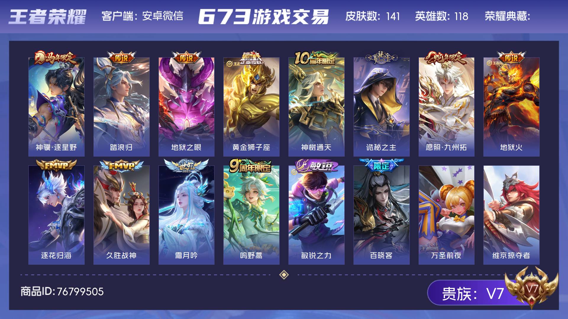 V7 皮肤141 英雄118 至尊星耀 星传说1 传说12