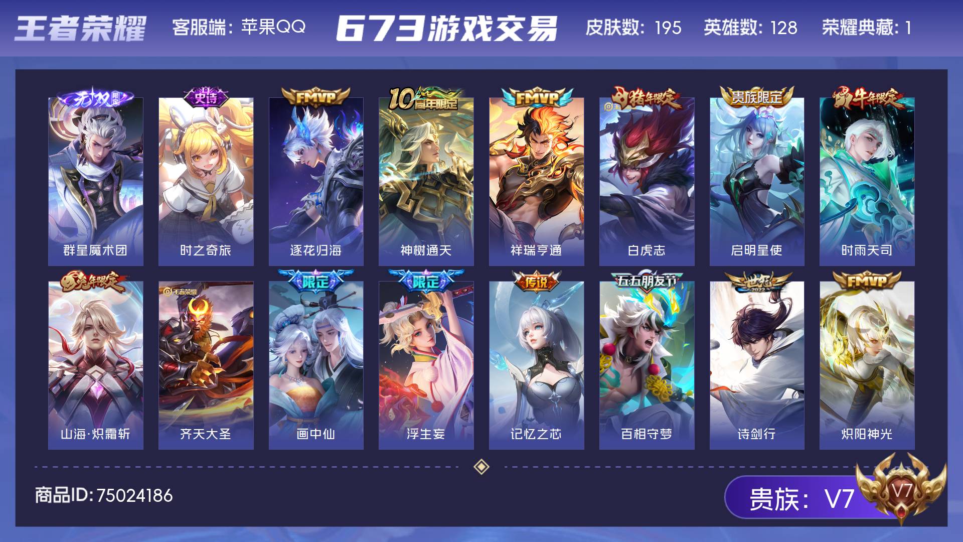 苹果QQ-5典藏-81传说-6无双-470皮肤-128英雄-无双王者-不想玩了,来个老板拿下吧。目前