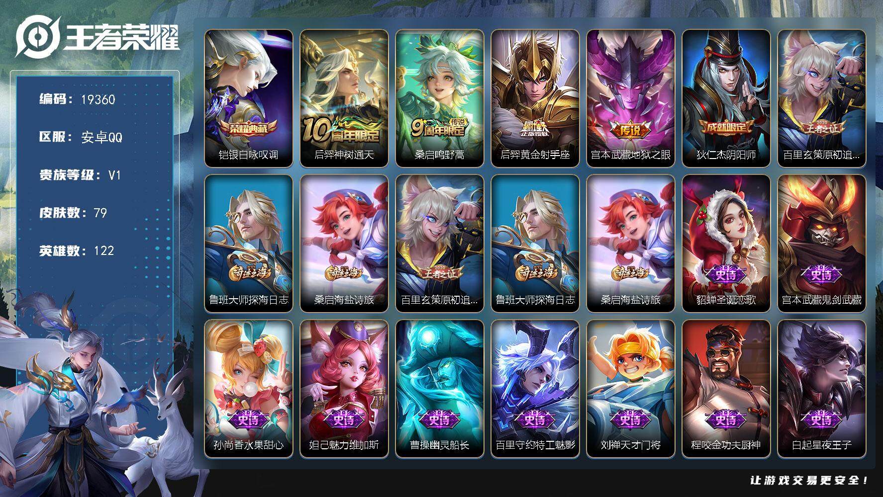 可换绑【V9性价比优质号 双典藏 双珍品 祈雪灵祝 浮生妄 白虎志 神威 多传