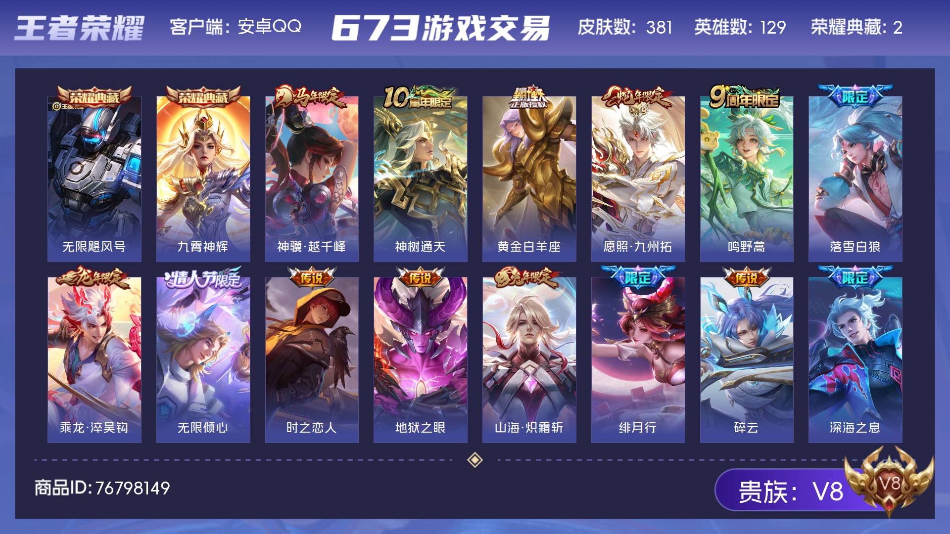 V8 皮肤381 英雄129 至尊星耀 荣耀典藏2 传说28