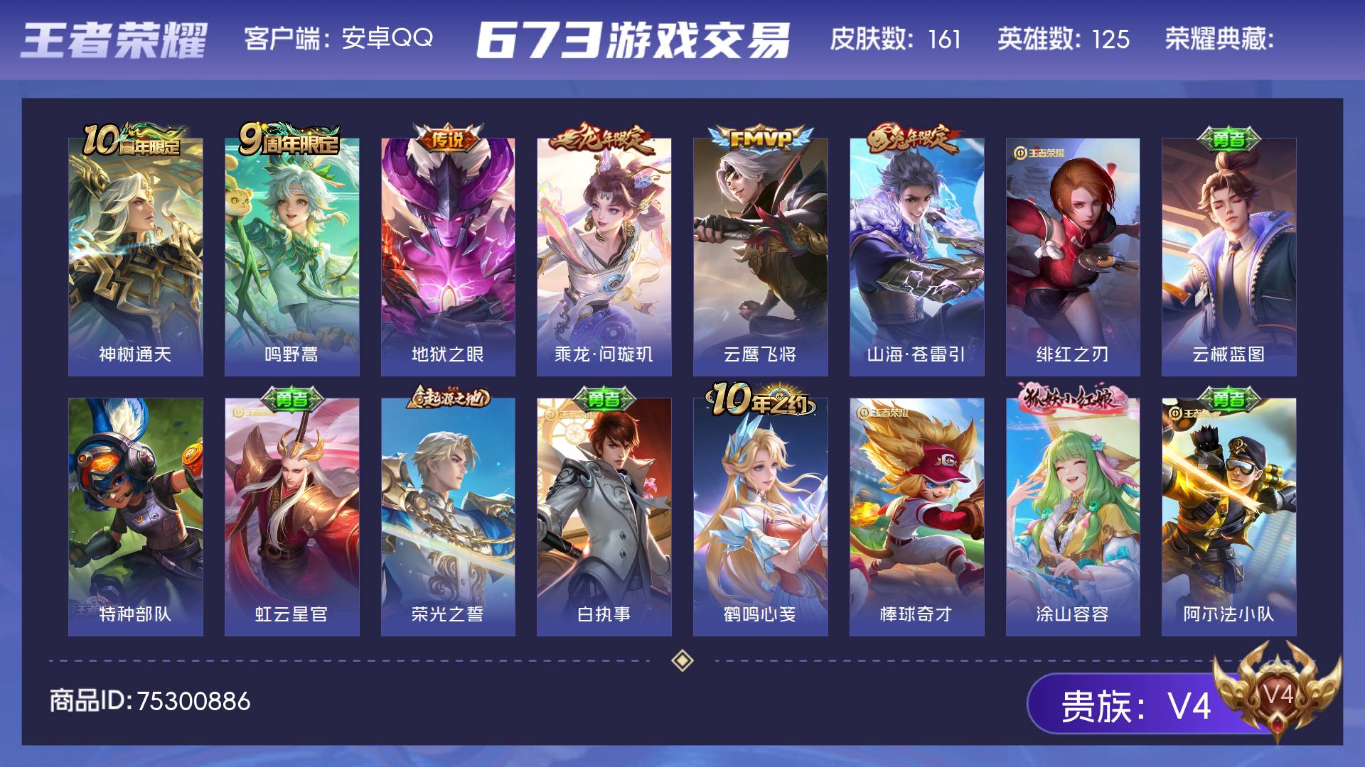 V4 皮肤161 英雄125 永恒钻石 星传说1 传说7 其他皮肤160