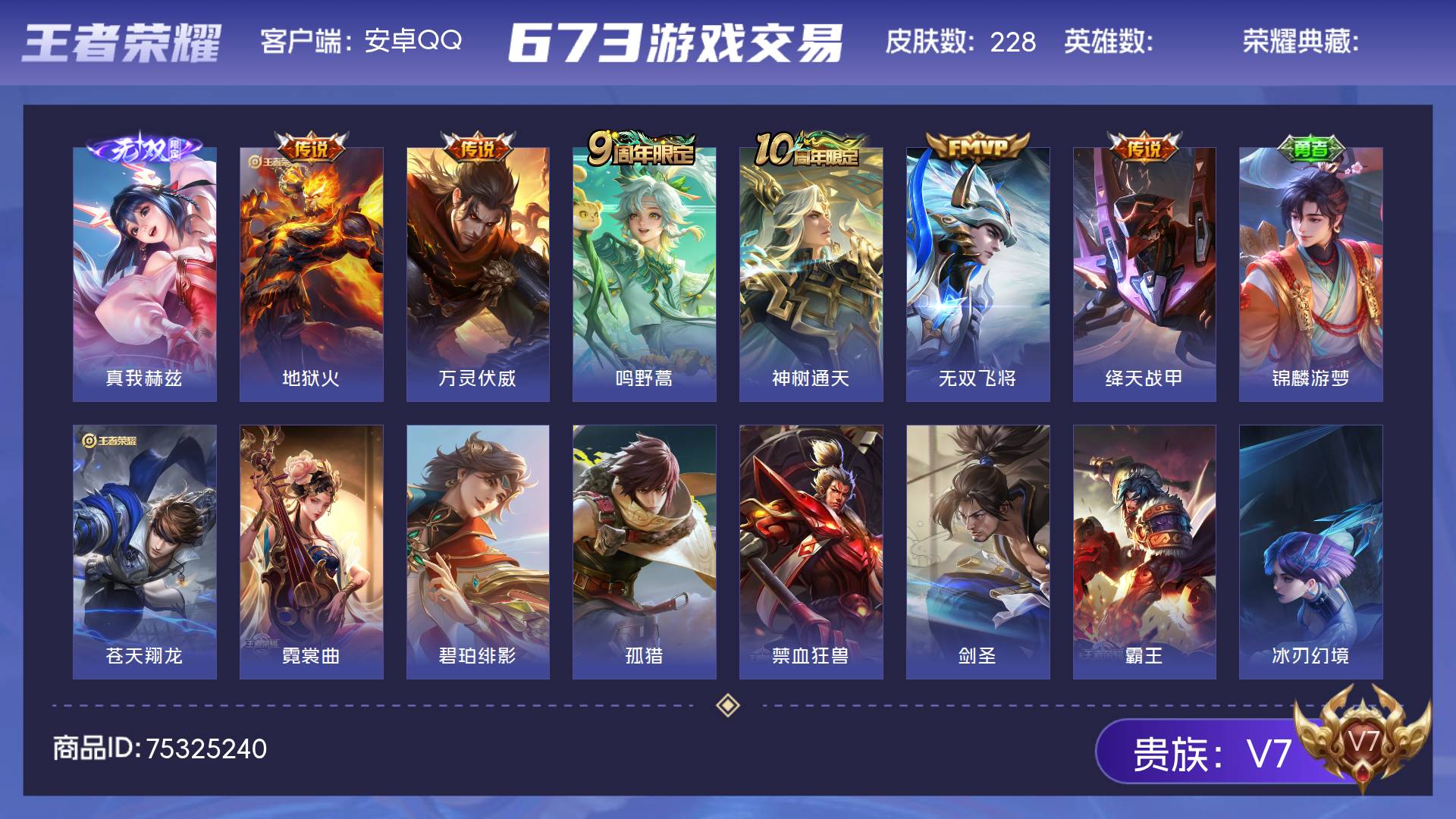 V7 皮肤228 最强王者 无双皮肤1 传说6 其他皮肤225