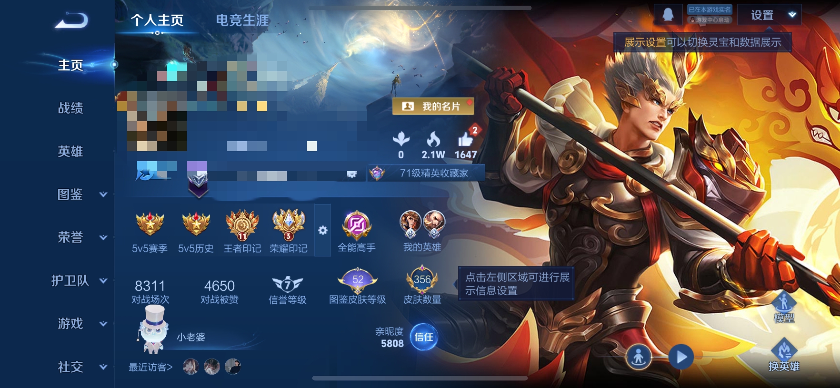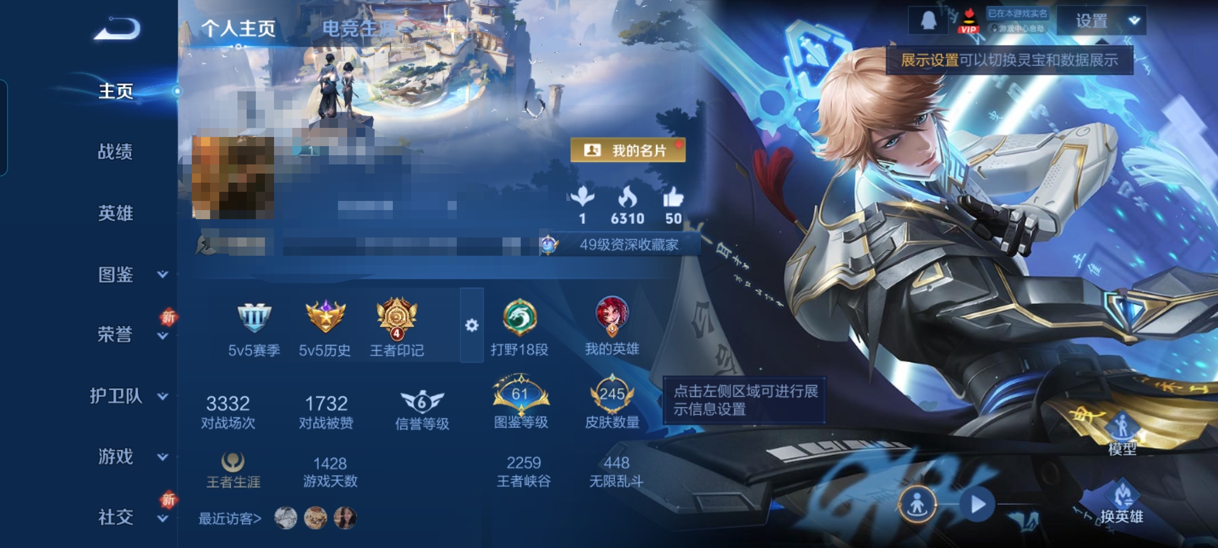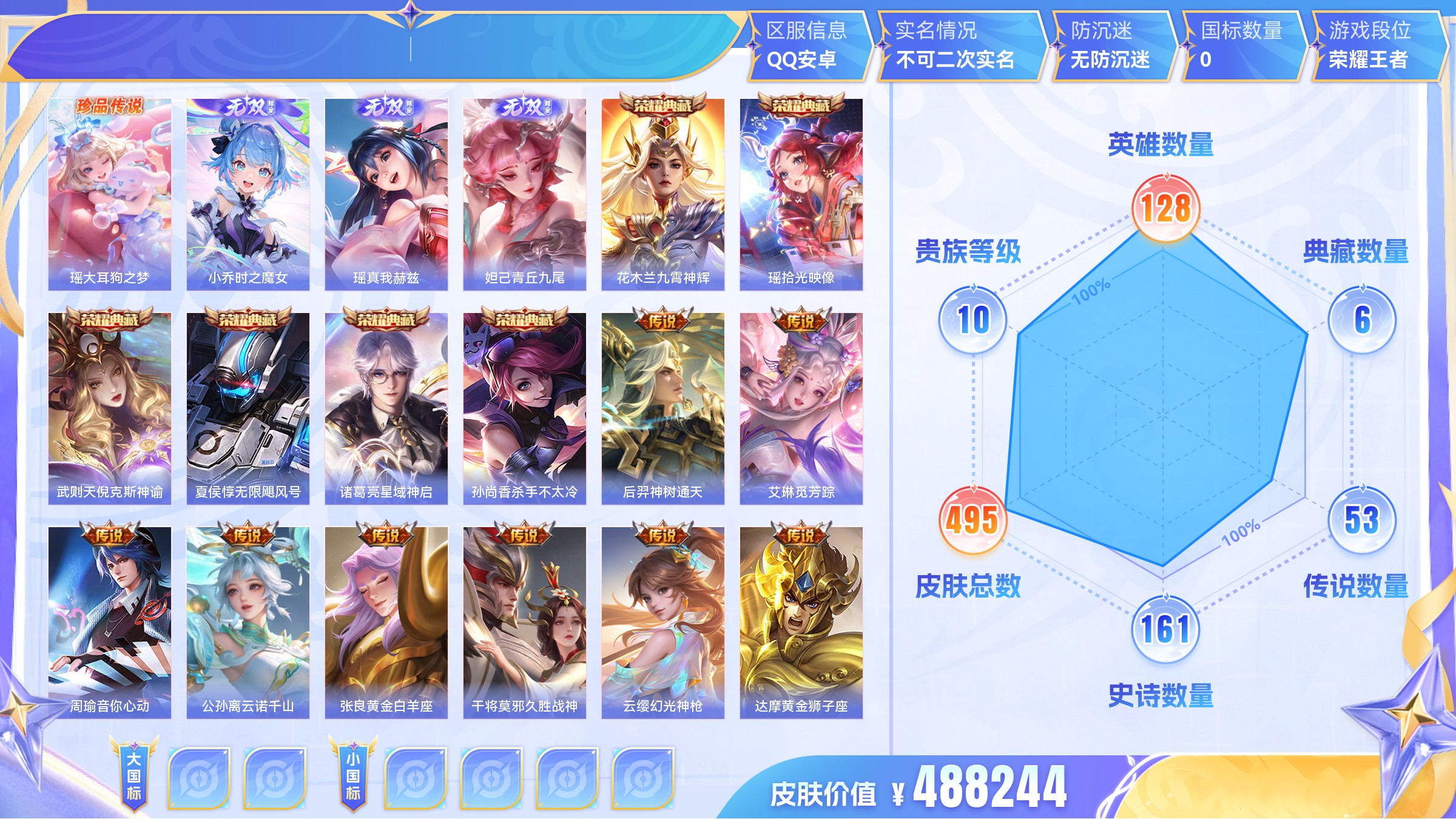 王者荣耀【安卓QQ】准V10!13W贵族积分了!245皮肤3典藏27传说V9