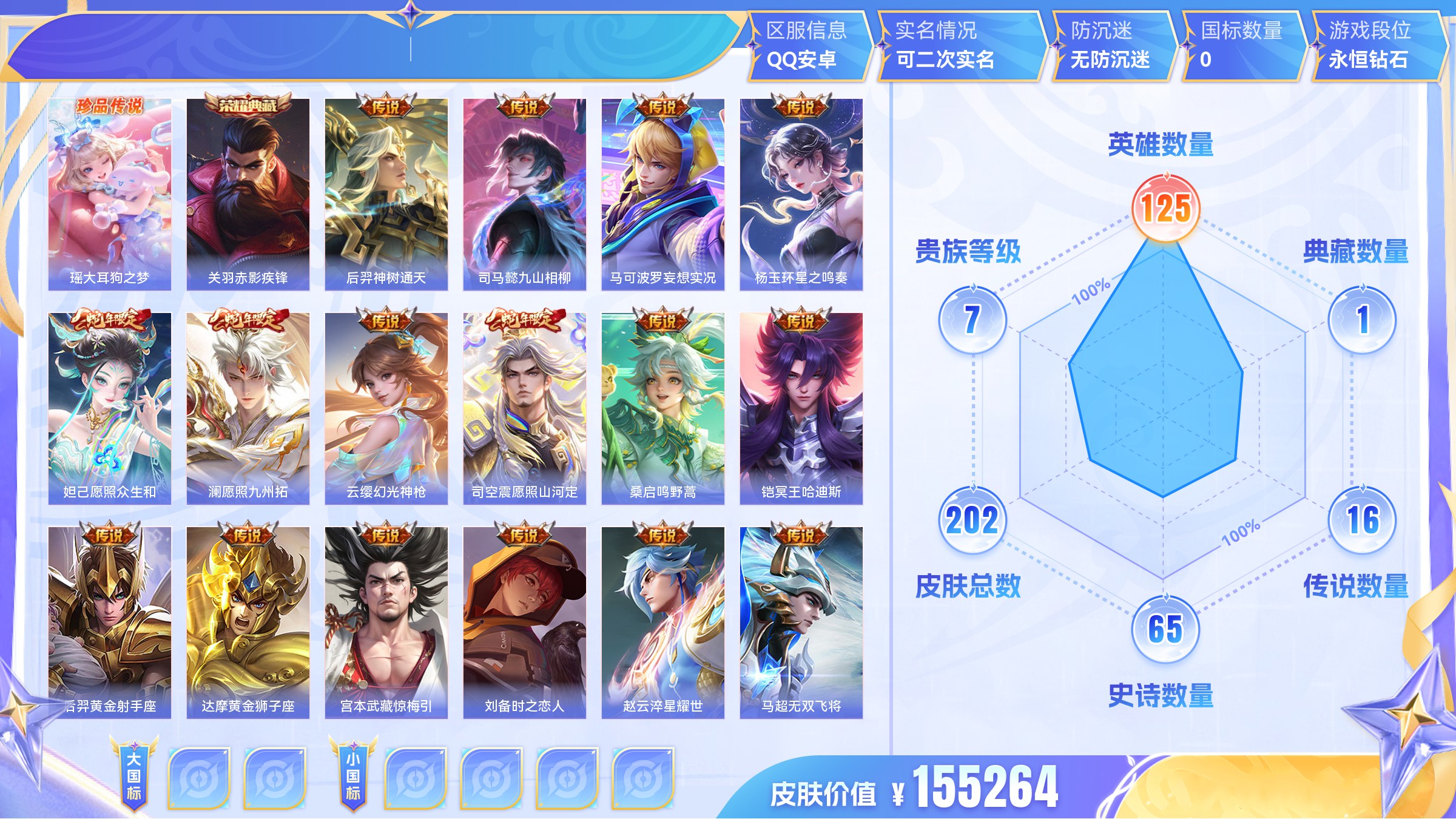 王者荣耀【安卓QQ】1典藏2珍品1星传说10传说V7 -159皮肤-125英雄