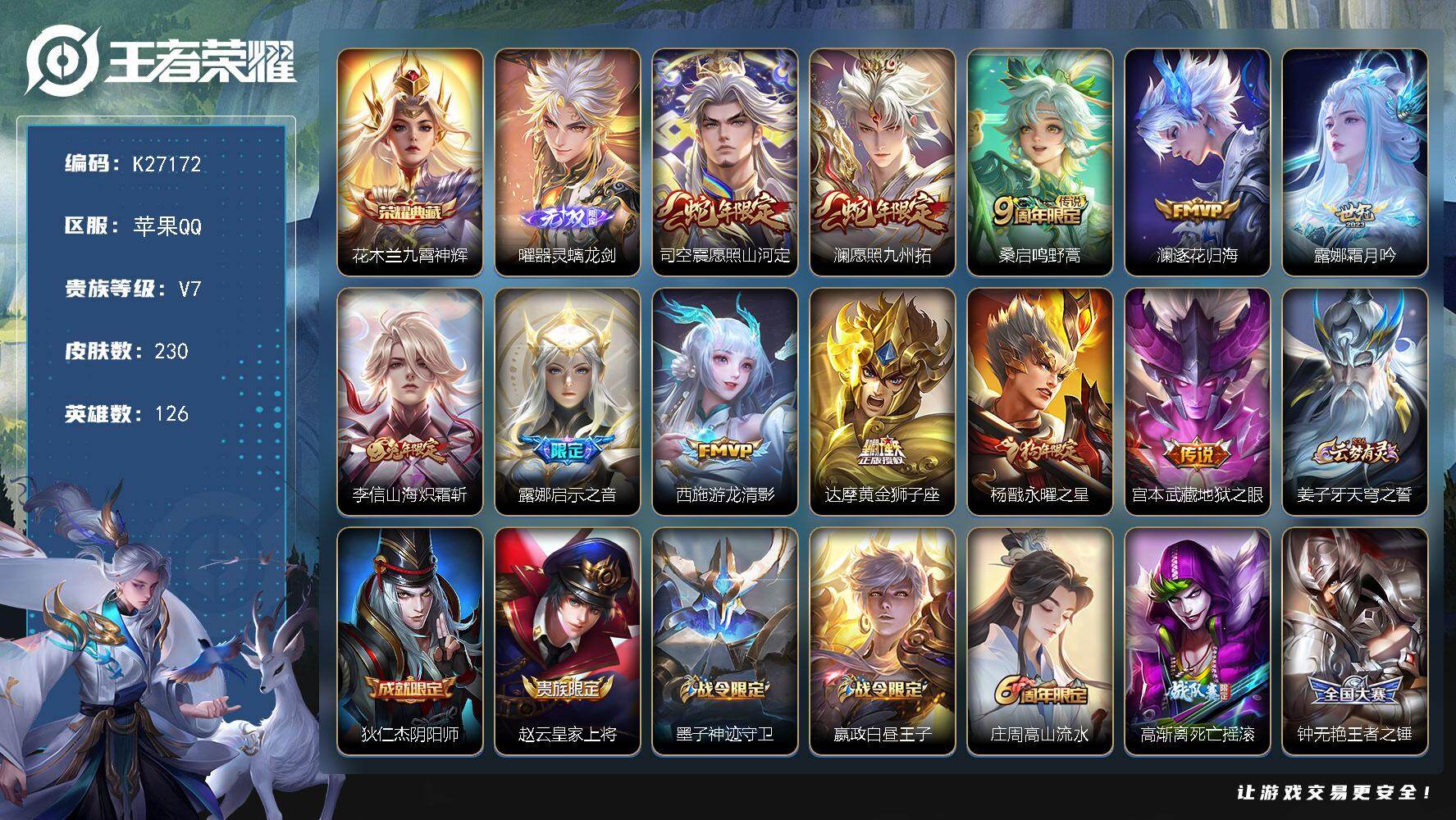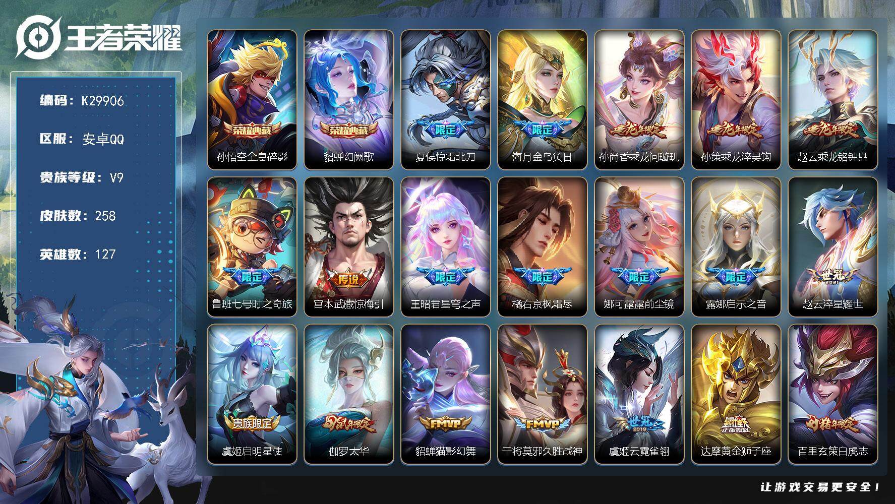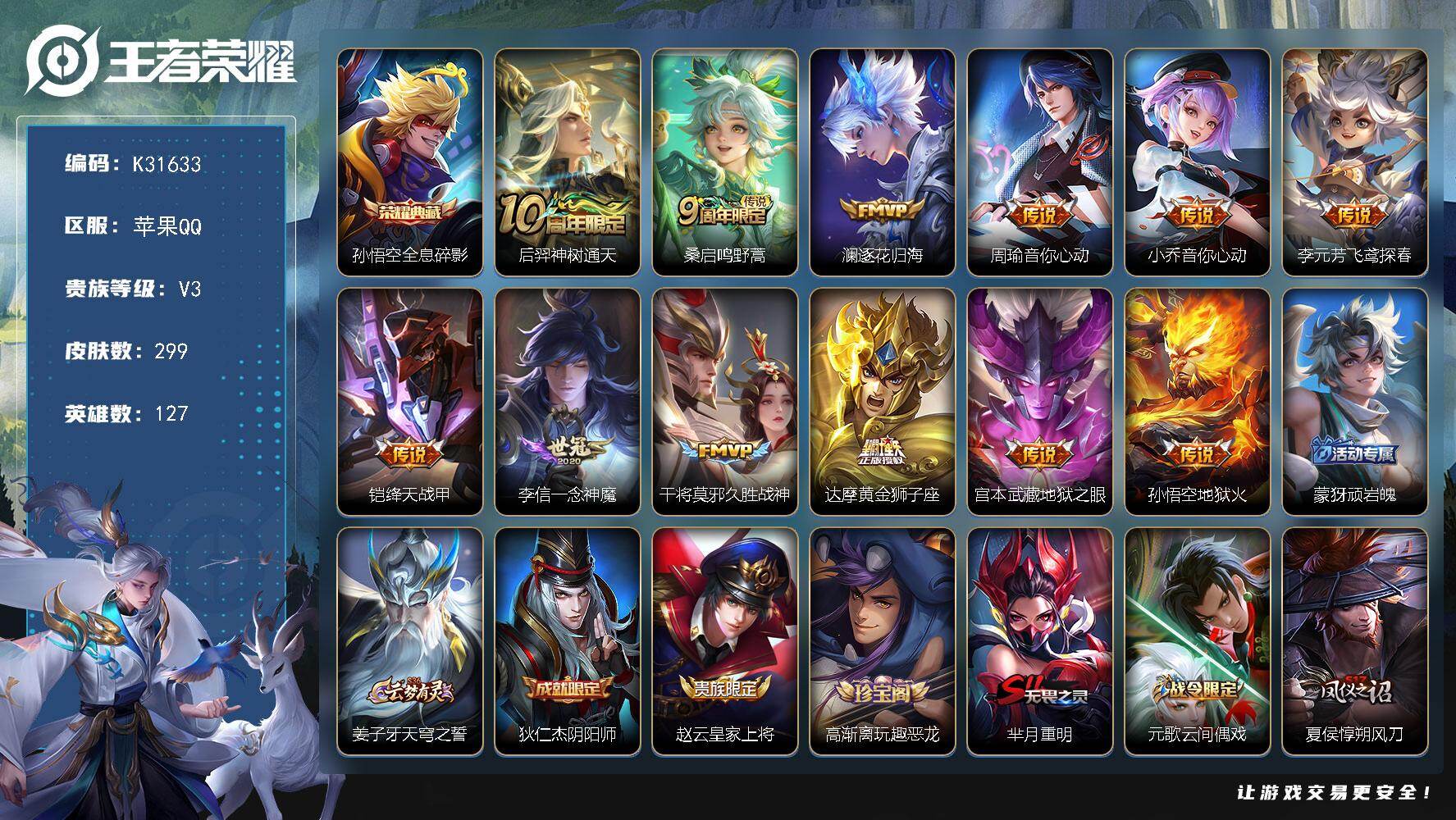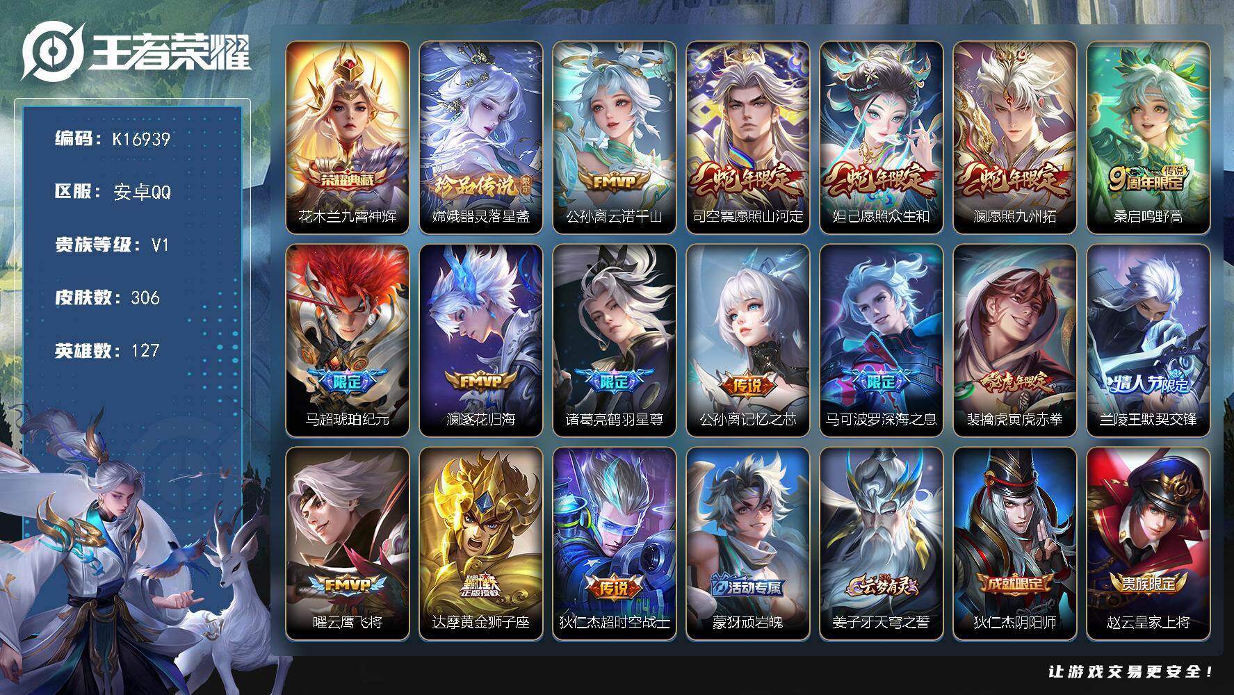 V7 皮肤287 英雄127 至尊星耀 荣耀典藏2 传说9 其他皮肤282