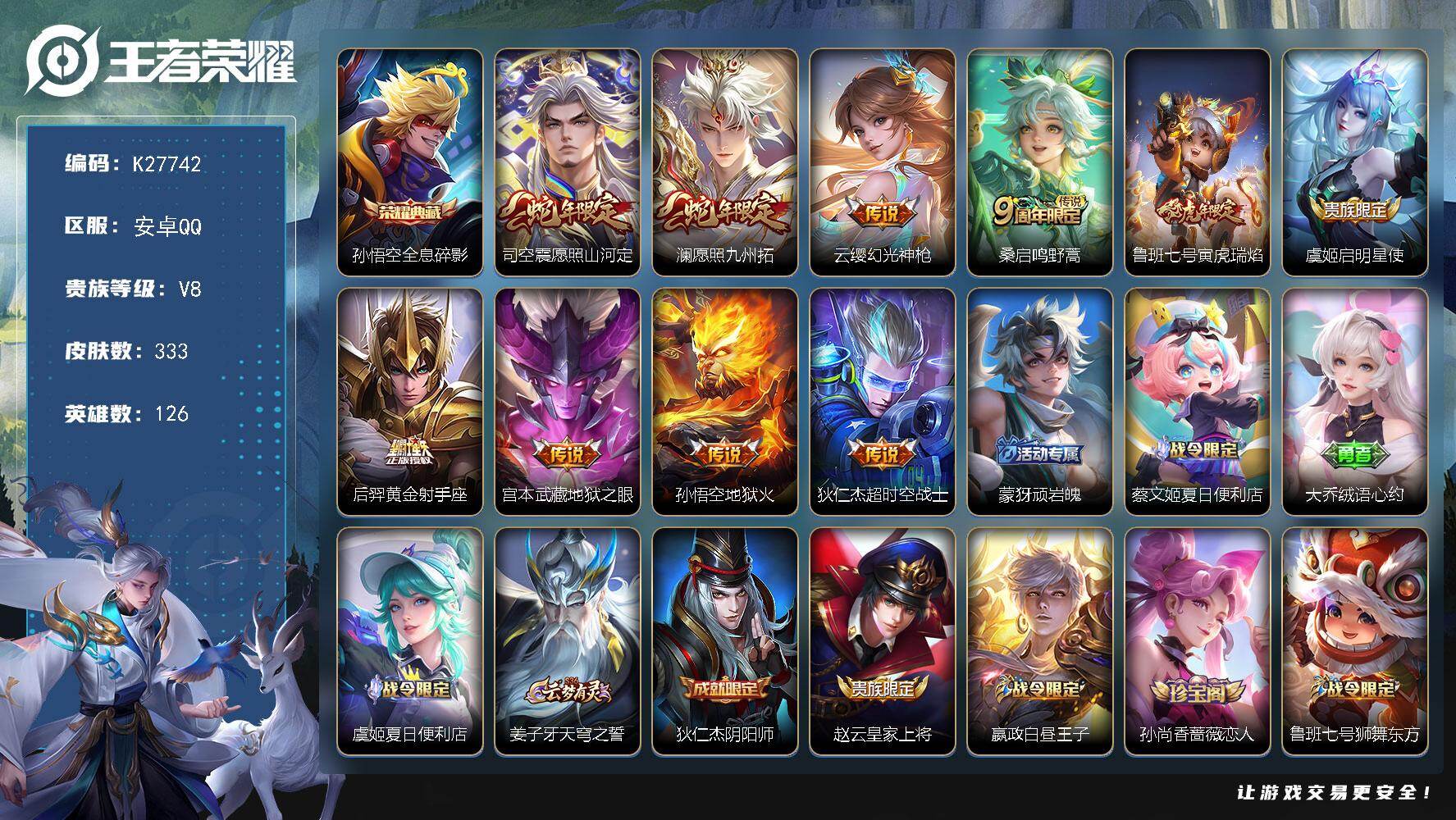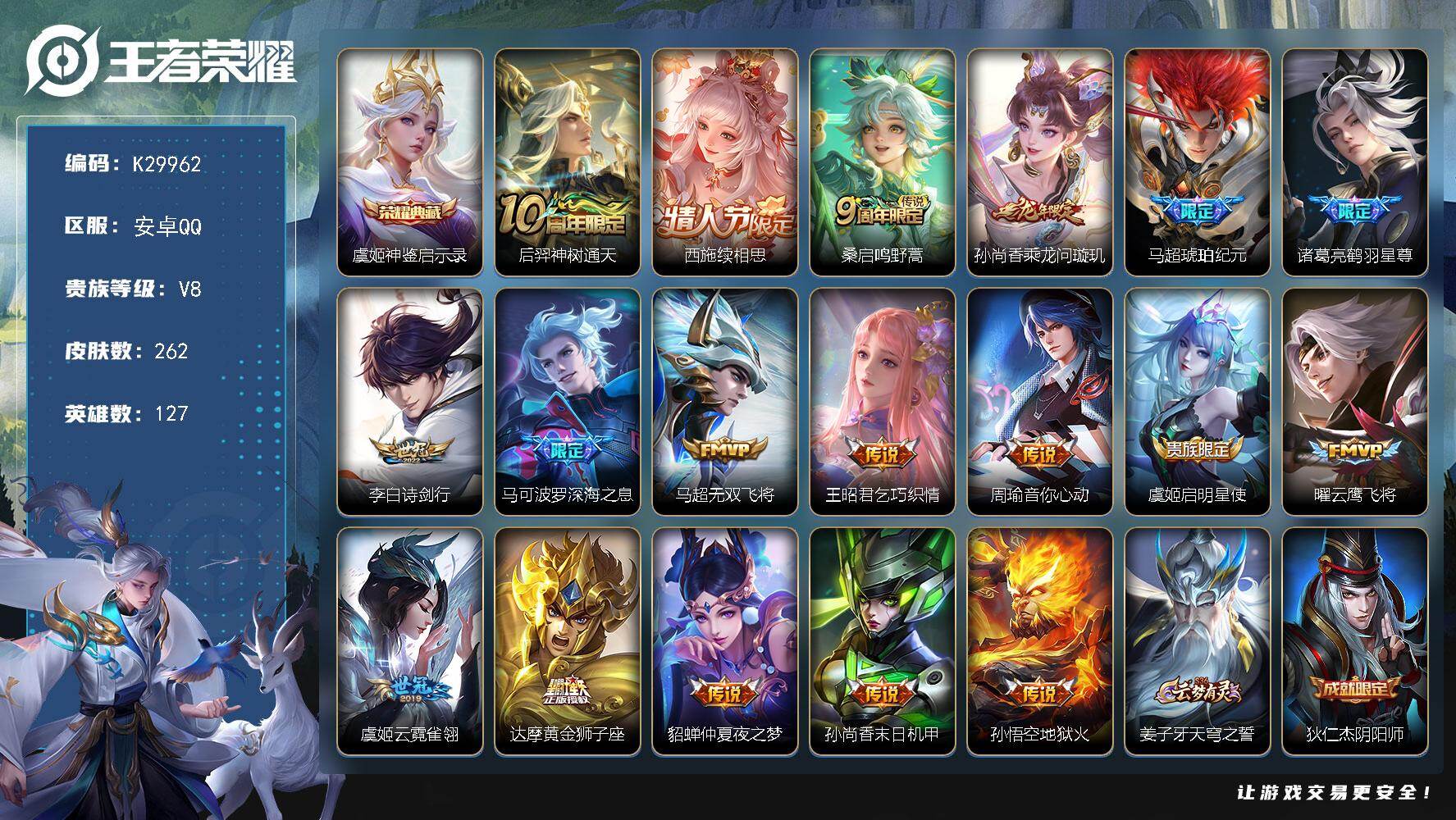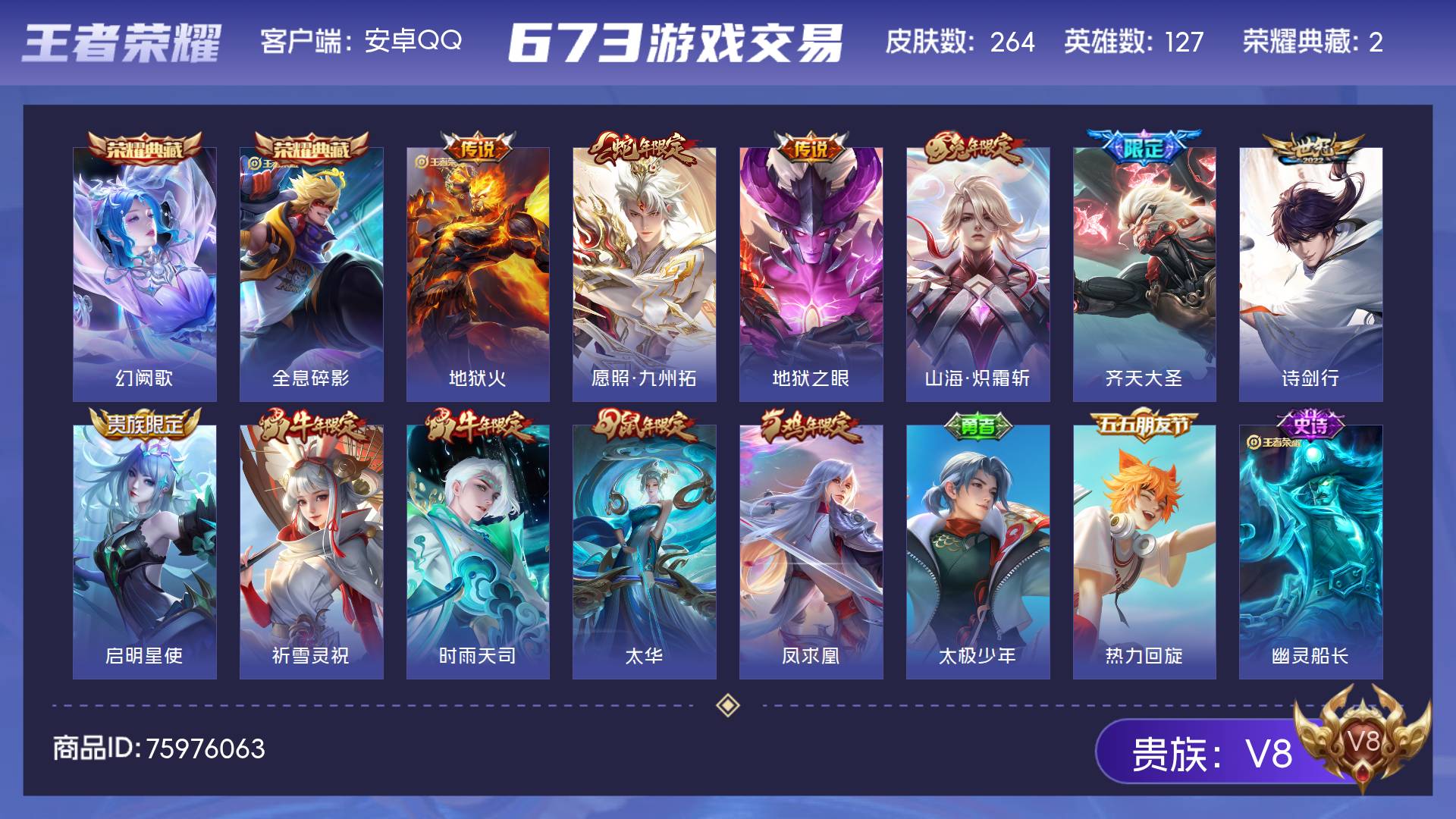 V8 皮肤264 英雄127 永恒钻石 荣耀典藏2 传说11 其他皮肤257