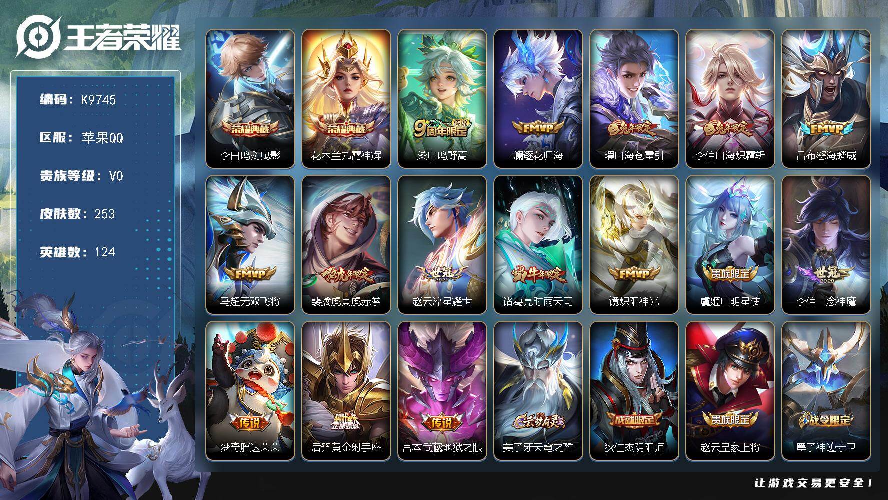 V7-永恒钻石III段位-124英雄-253皮肤-1典藏皮肤-16传说-64史诗