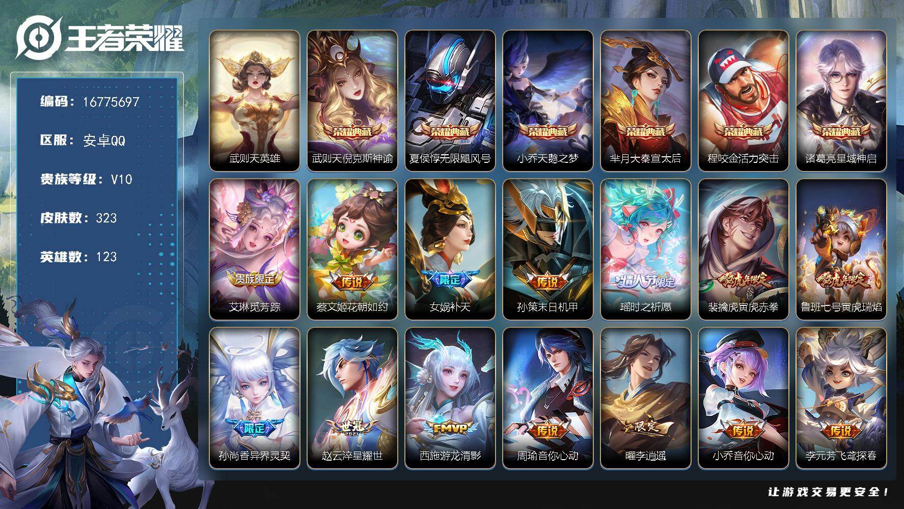 【16775697】安卓Q-V10-荣耀黄金II段位-123英雄-323皮肤-