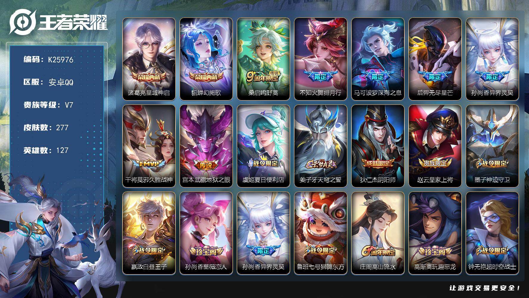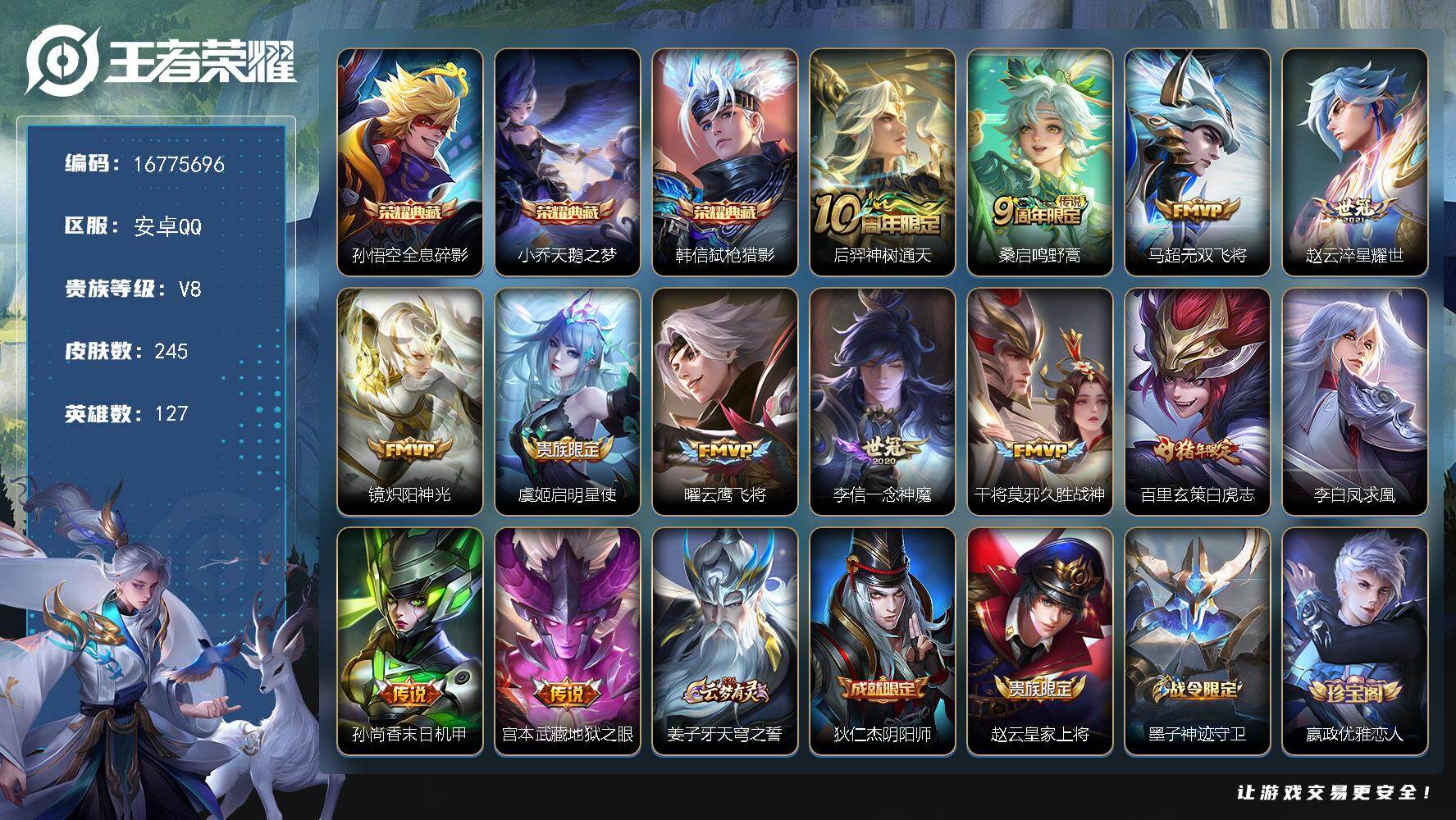 【16775696】安卓Q-V7-至尊星耀III段位-127英雄-245皮肤-