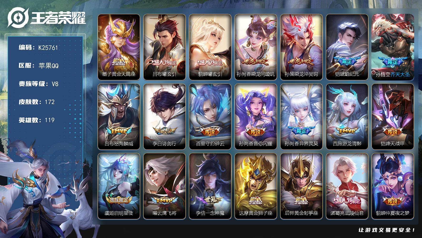 可换绑【V9精品女号·瑶全皮·伽罗全皮·西施全皮·小乔瑶无双·伽罗瑶嫦娥3珍品