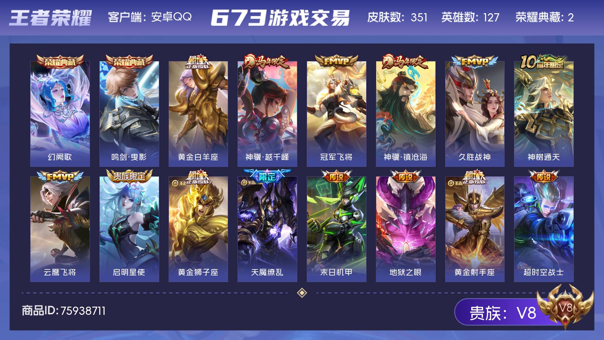 V8 皮肤351 英雄127 荣耀王者 荣耀典藏2 传说16 其他皮肤340