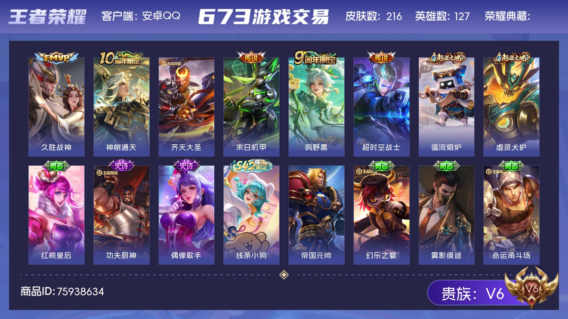 V6 皮肤216 英雄127 至尊星耀 星传说2 传说6 其他皮肤217