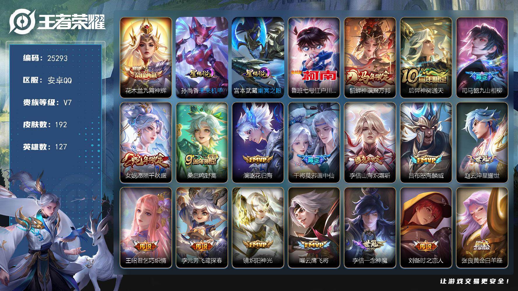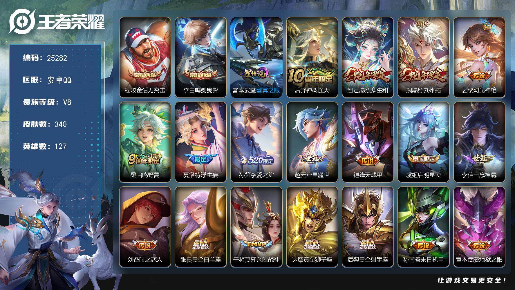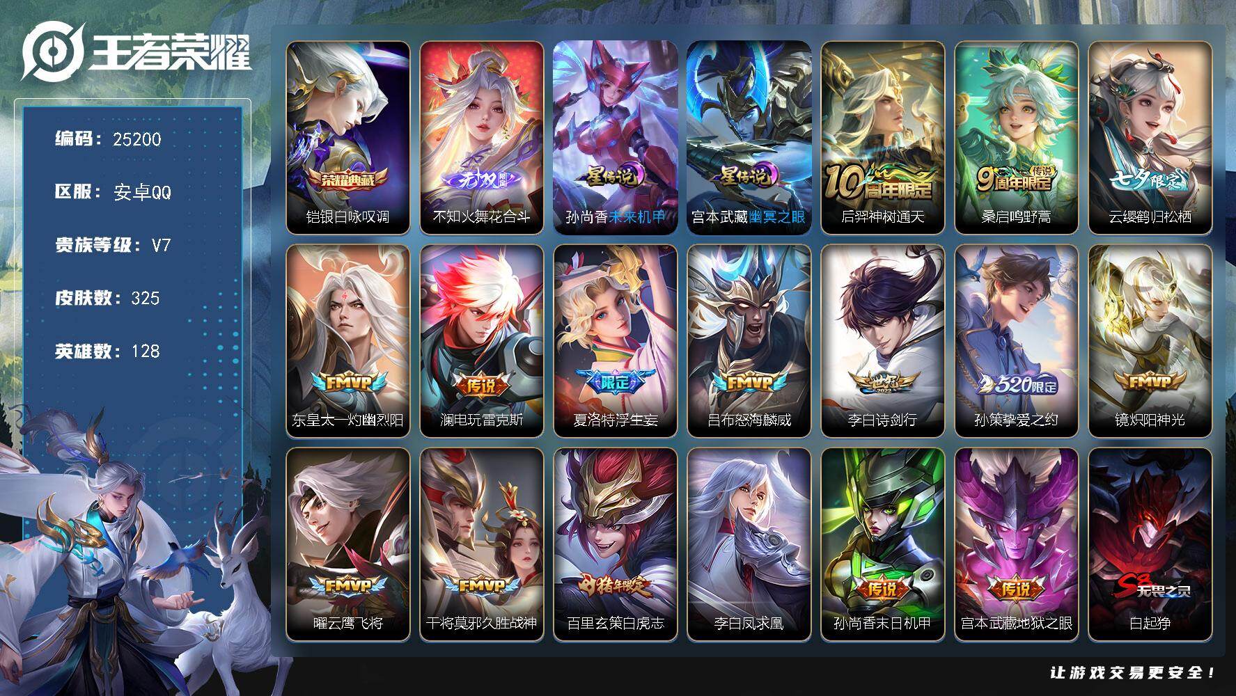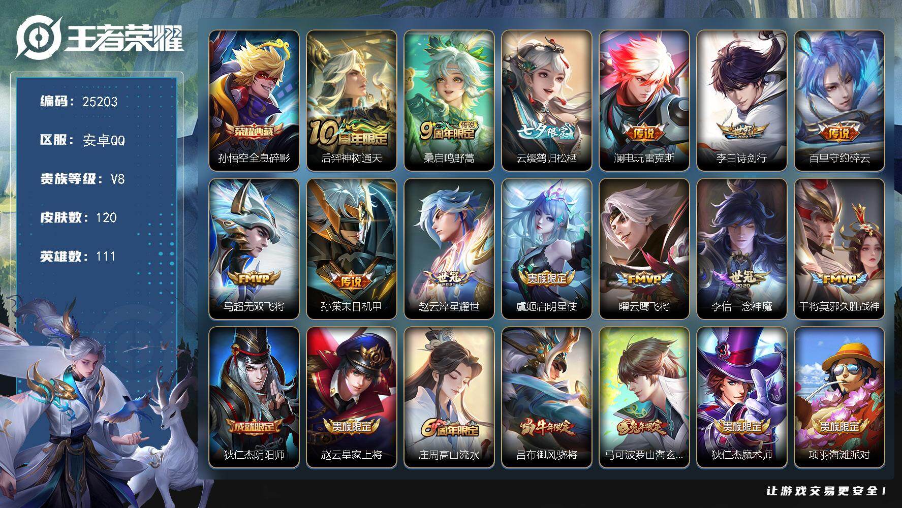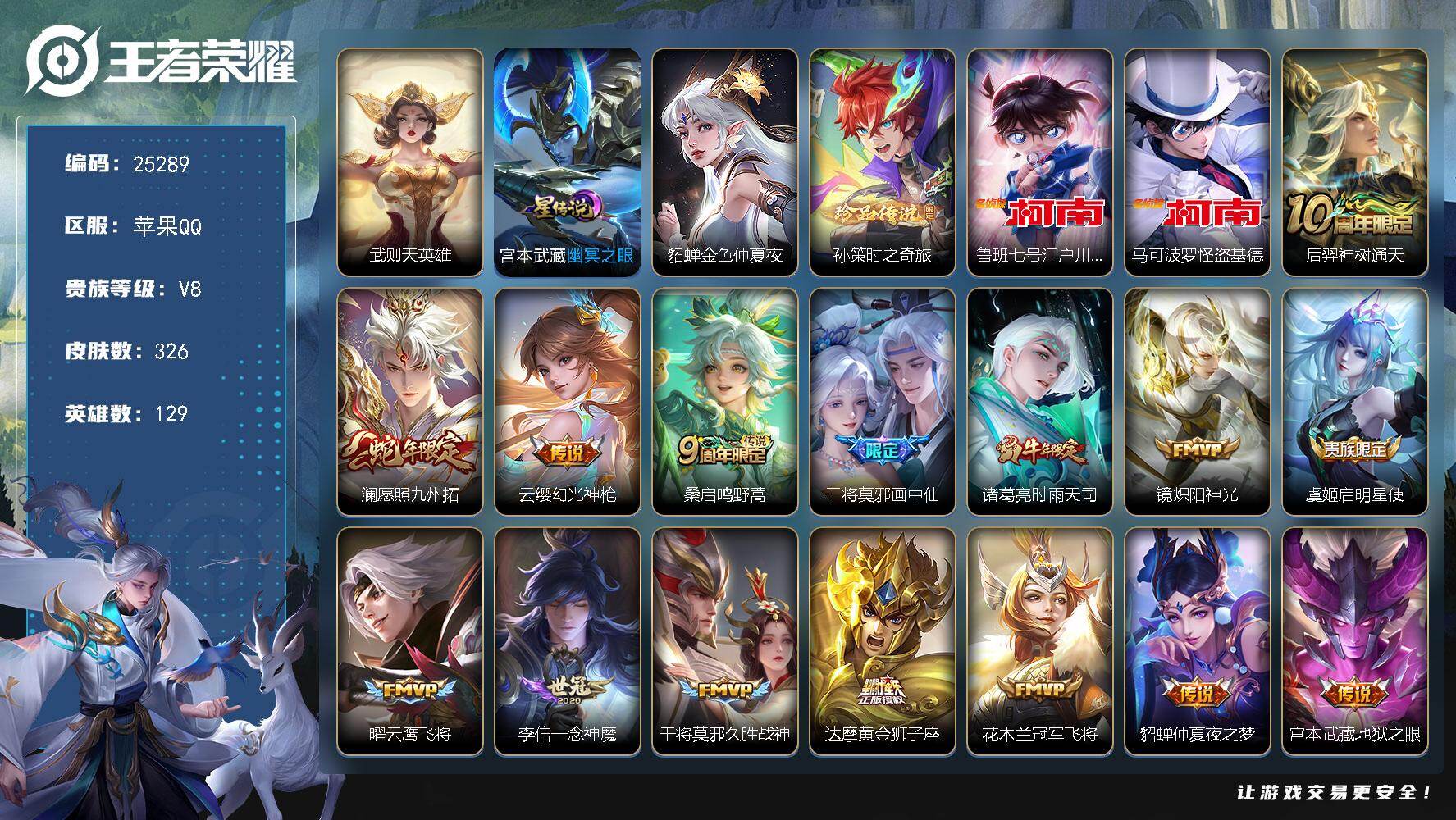 V8 6传说 126英雄 159皮肤 可修改实名 女号 【