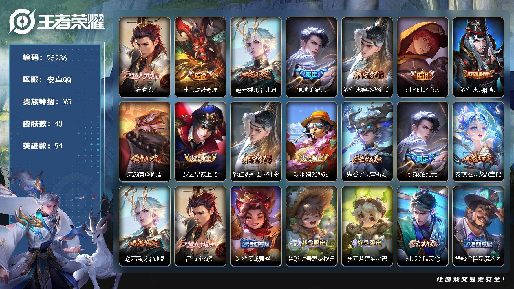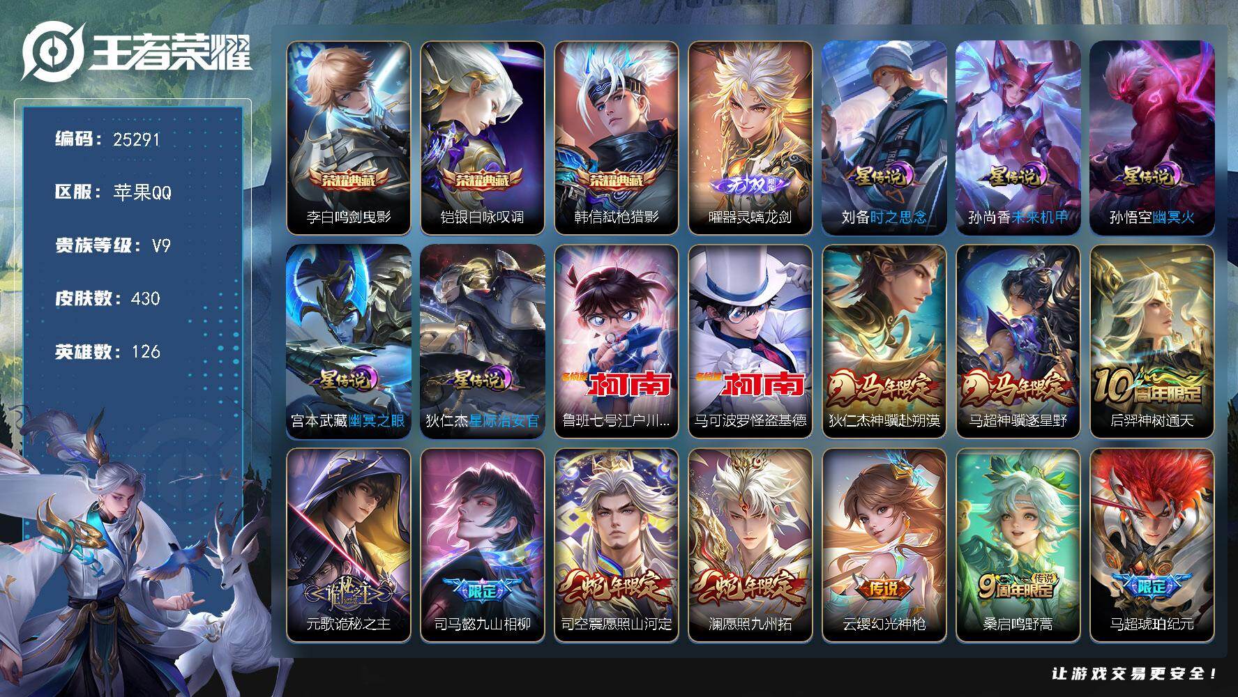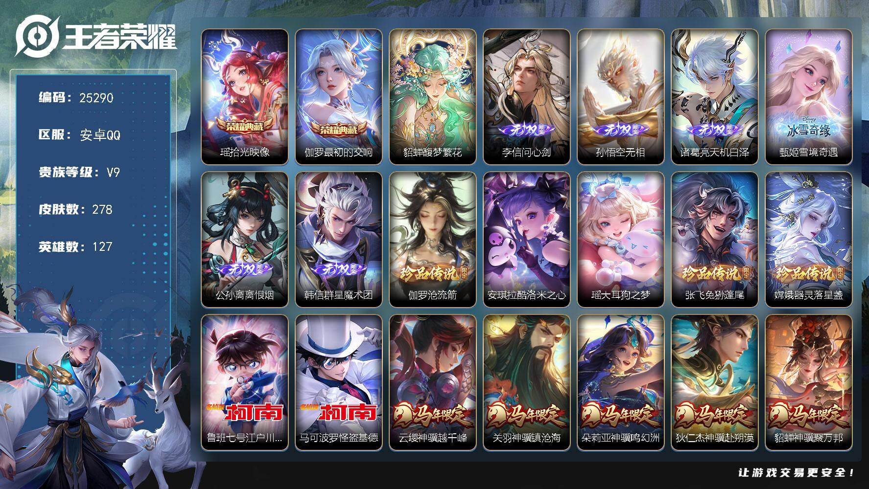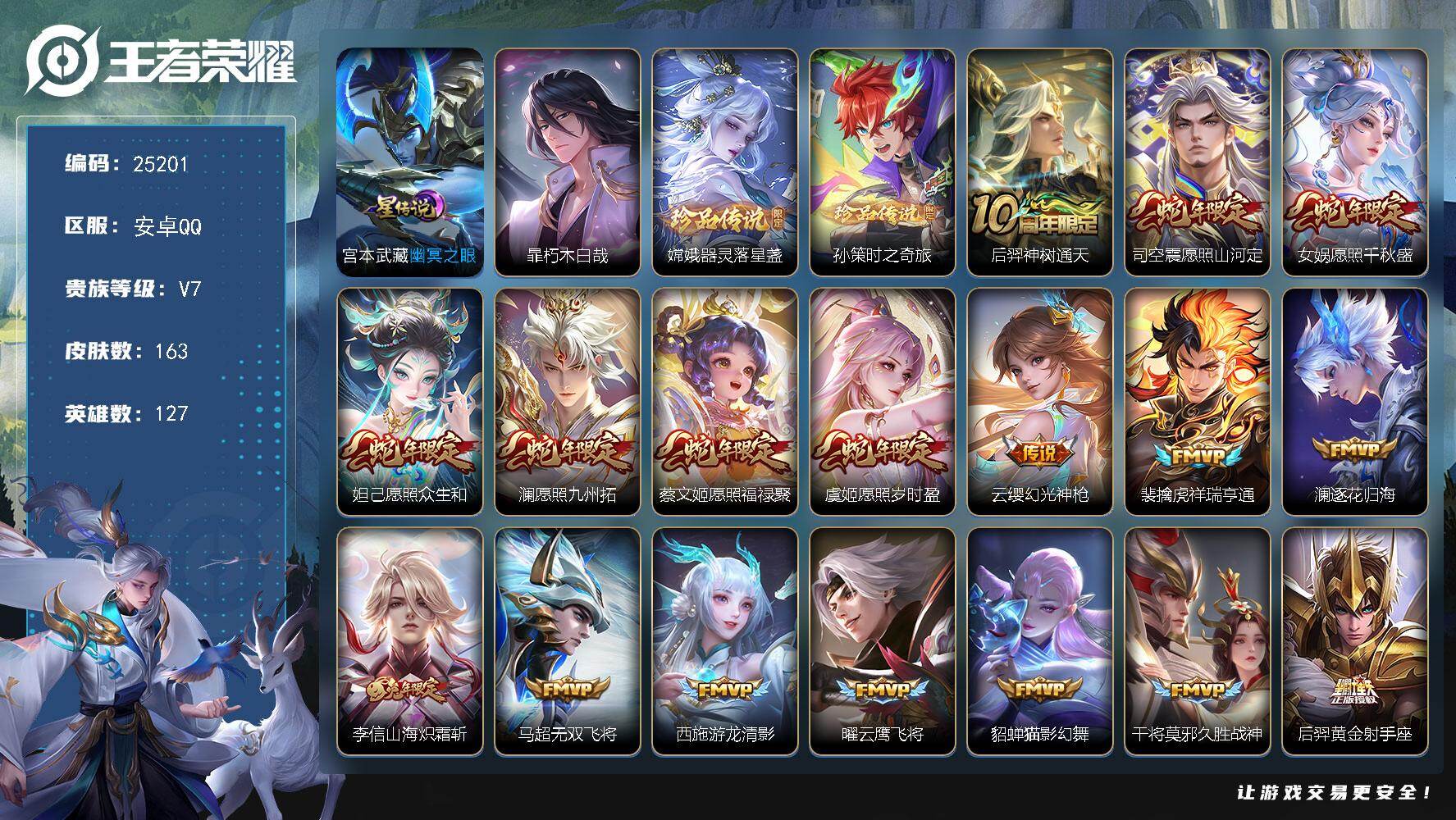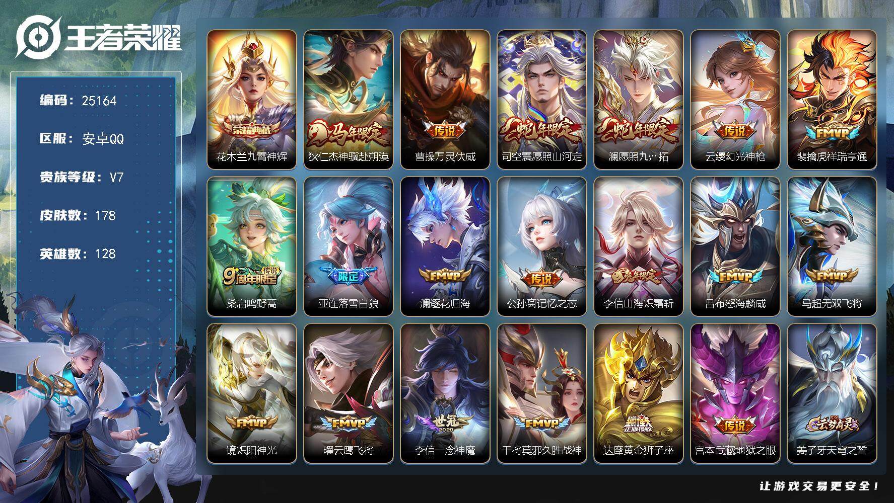 V8 6传说 126英雄 159皮肤 可修改实名 女号 【