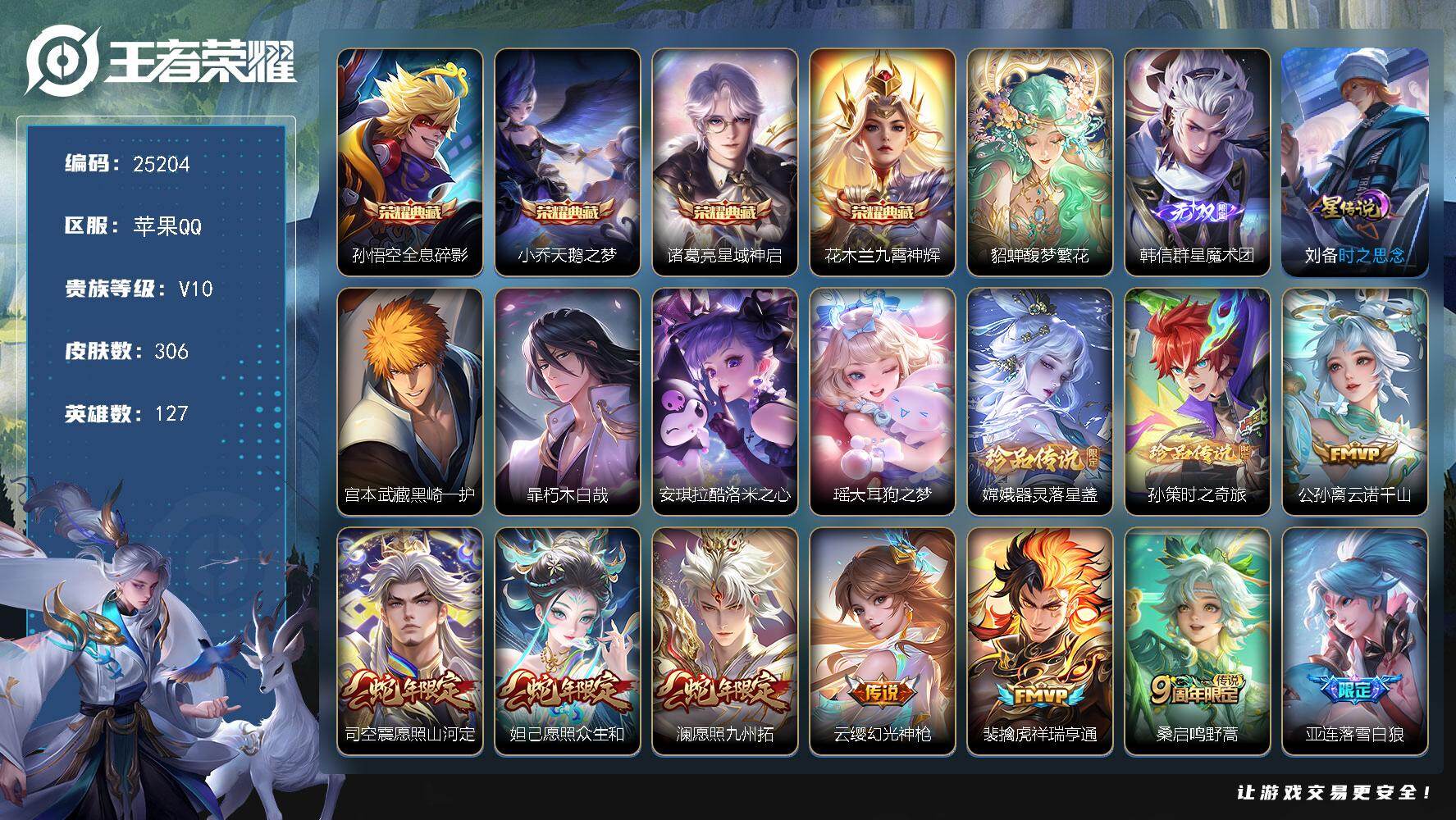 可换绑【V10精品号·貂蝉慕夏·孙策全皮·4典藏·韩信无双·6珍品·夜礼服假面·