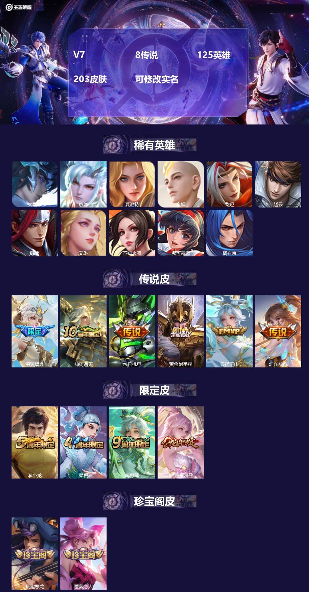 V7-绝世王者-127英雄-180皮肤-1典藏-1珍品-