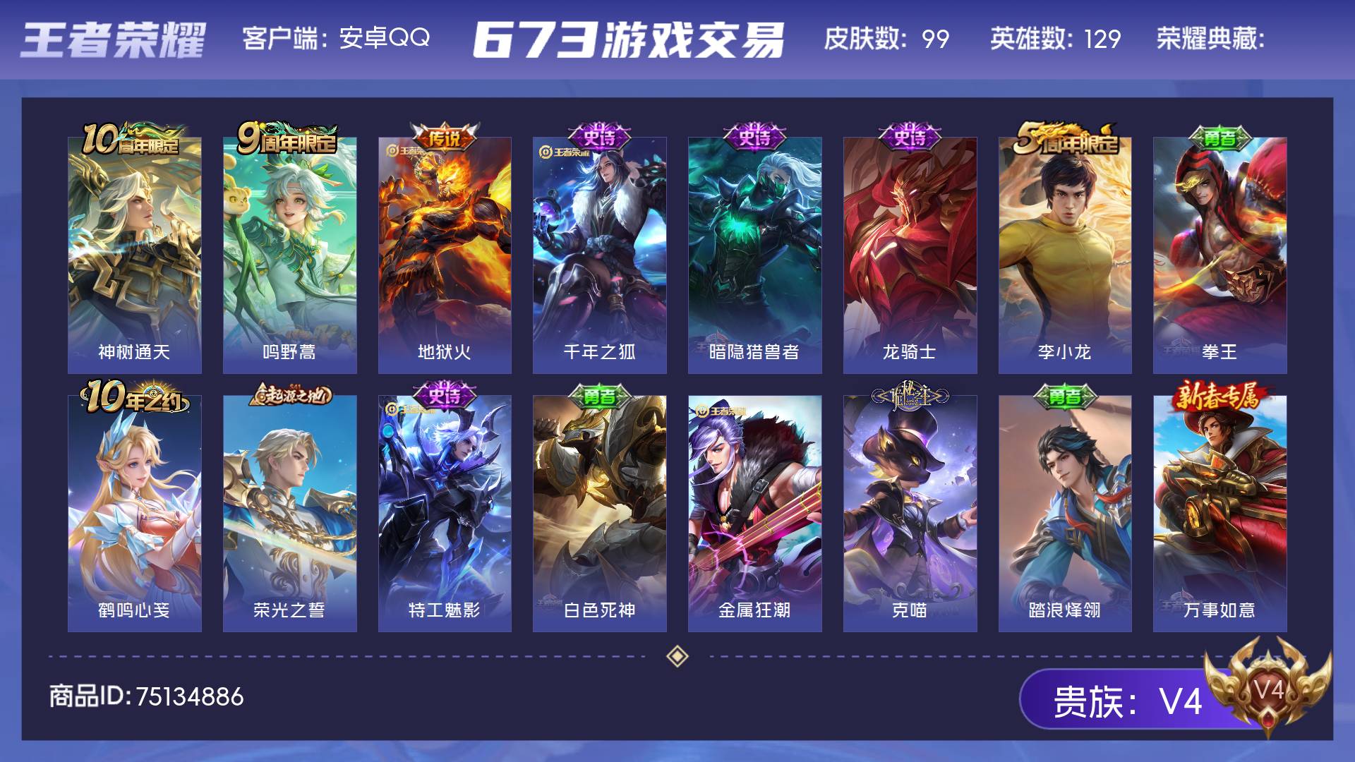 V4 皮肤99 英雄129 永恒钻石 星传说1 传说3 其他皮肤101