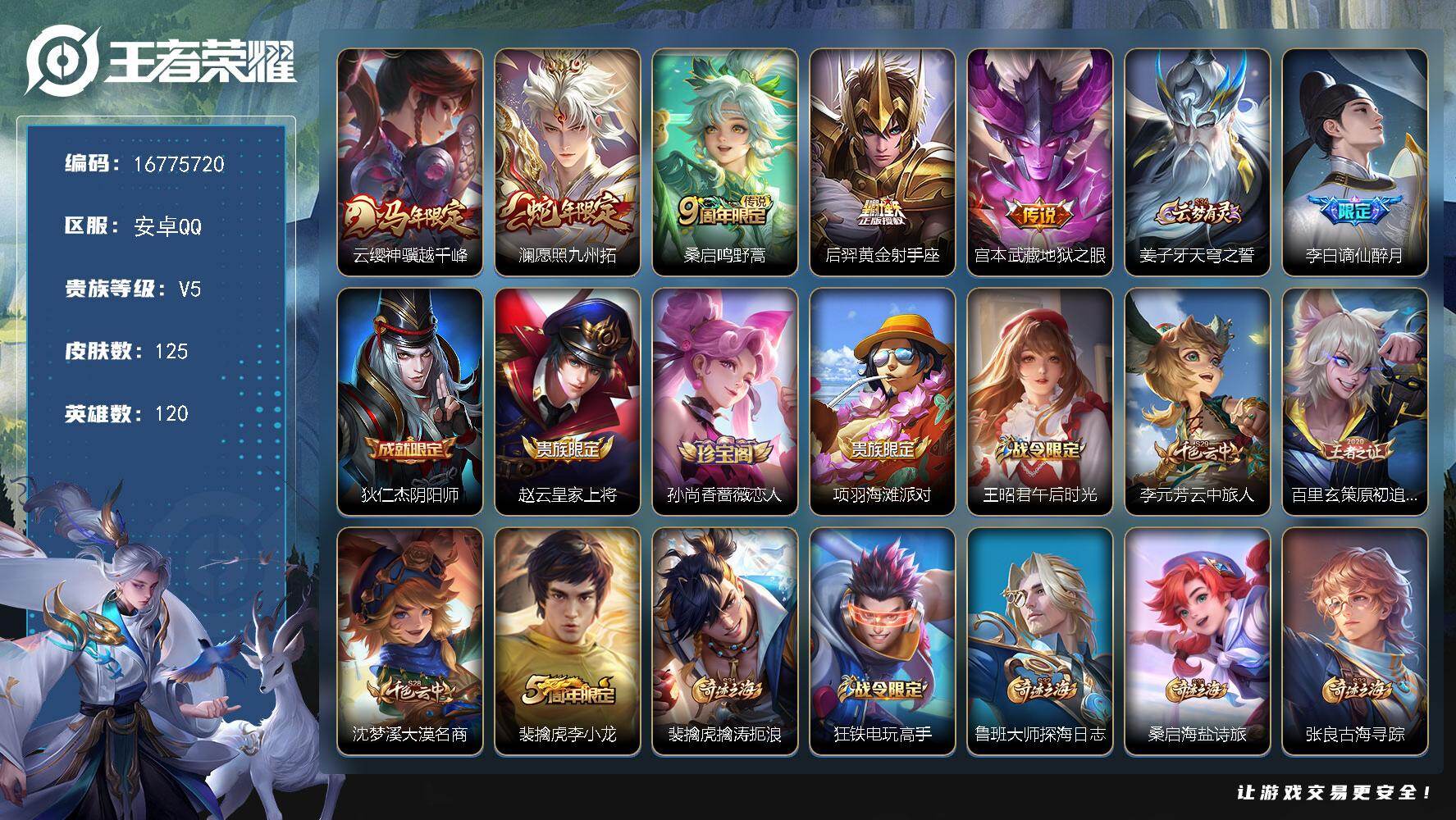 【16775720】安卓Q-V5-最强王者段位-120英雄-125皮肤-5传说