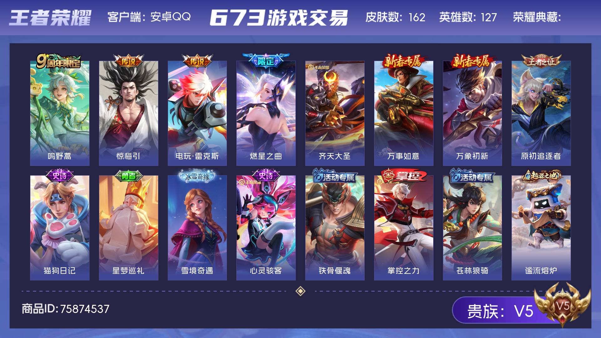 V5 皮肤162 英雄127 永恒钻石 传说5 其他皮肤164