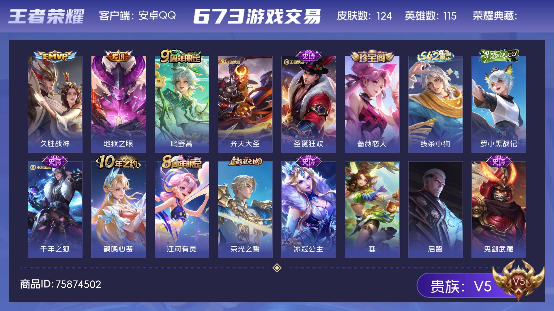 V5 皮肤124 英雄115 至尊星耀 传说4 其他皮肤126