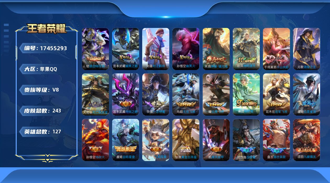 苹果Q-V8-最强王者段位-127英雄