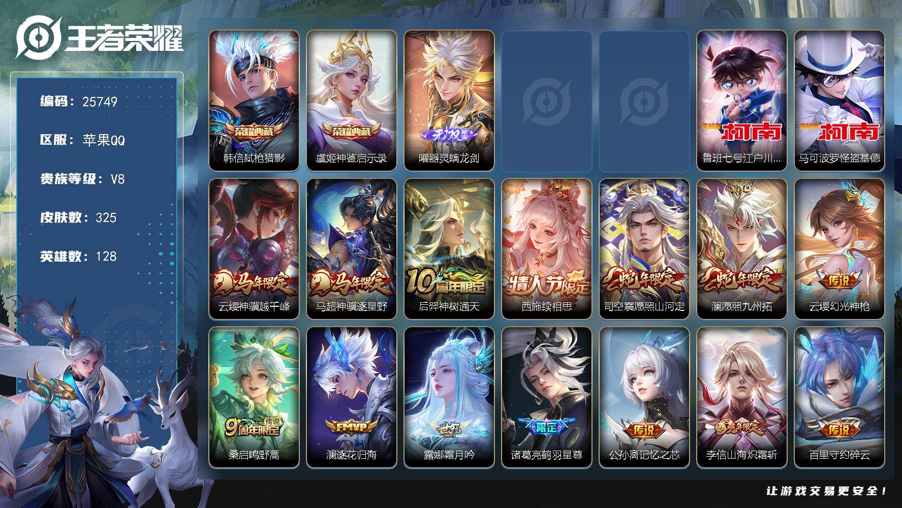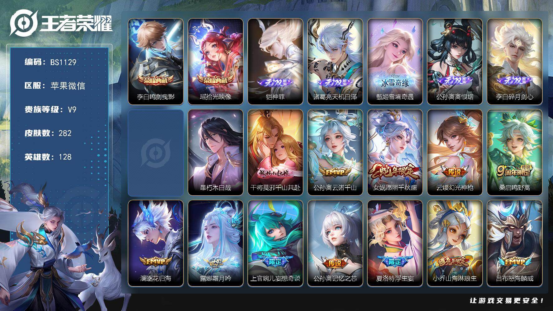 苹果WX-V9-最强王者段位-128英雄-282皮肤-2典藏皮肤-5无双-1珍