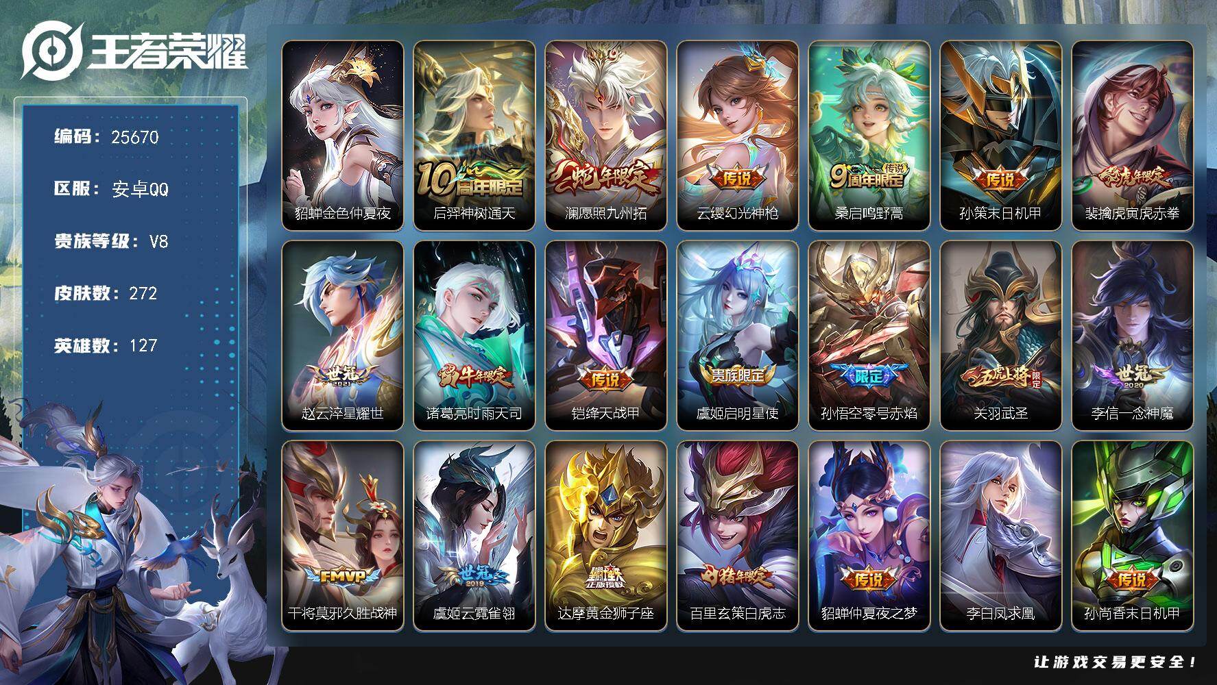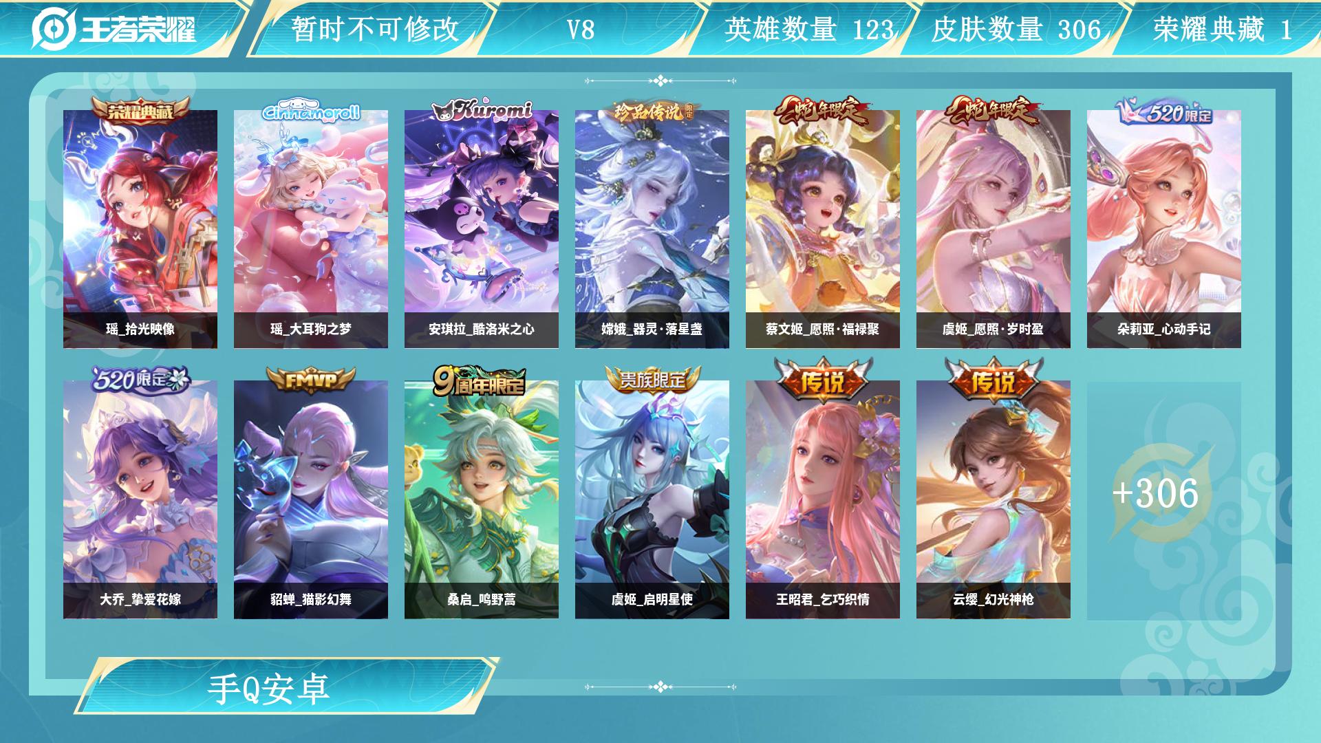 安卓WX-V8-永恒钻石II段位-128英雄-260皮肤-2典藏皮肤-1珍品传说
